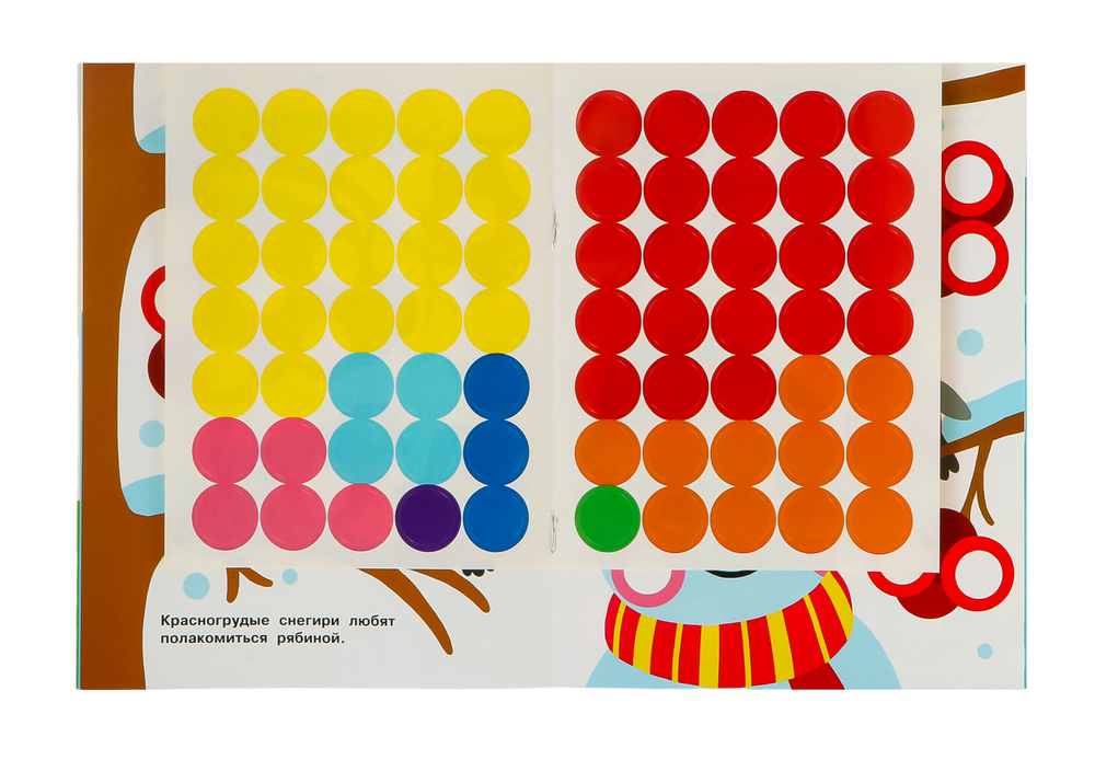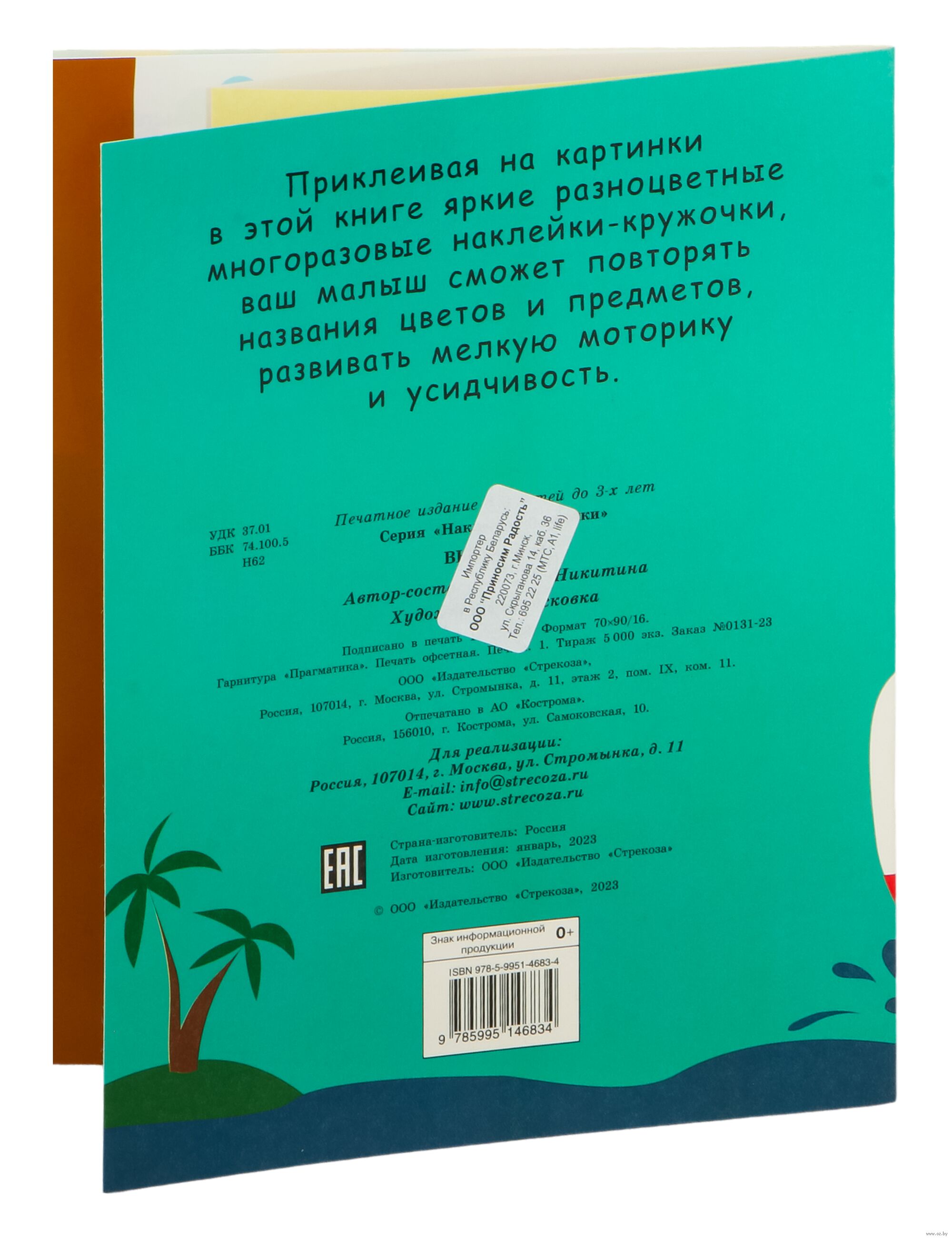 Приклеивая на картинки в этой книге яркие разноцветные многоразовые наклейки – кружочки, ваш малыш сможет повторять названия цветов и предметов, развивать мелкую моторику и усидчивость.