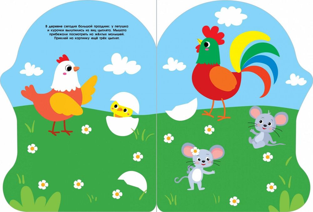 Веселые мышата приглашают вас в гости. Познакомьтесь с их друзьями и узнайте, что они любит больше всего. Приклейте наклейки и сделайте разноцветные картинки ещё красивее!
