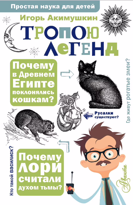 Книга советского биолога, писателя и популяризатора науки для детей Игоря Акимушкина "Тропою легенд" расскажет о необычных животных и растениях – мифических и реальных, о которых в древние времена слагали легенды. Часто вымысел в этих легендах идет бок о бок с правдой. Вы узнаете, может ли петух нести яйца, почему дурная слава у летучих мышей, как смеется кукабарра, почему некоторые грибы светятся в темноте, кого из животных принимали за василисков и единорогов, русалок и драконов... и многое другое.