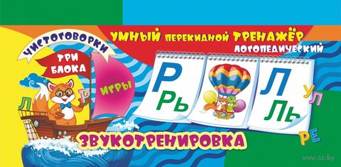 Яркие перекидные карточки в виде табло с транскрипцией звуков, артикуляционными упражнениями, чистоговорками, бубнилками и повторялками помогут детям автоматизировать правильное произношение звуков [Р], [Р'], [Л], [Л'] с опорой на наглядный тематический ряд цветных предметных картинок, их применением для привлечения интереса ребёнка к произносительной стороне конкретного звука в заданной позиции и превратят обучение и звуковую тренировку в увлекательное и очень нужное занятие. Перекидной трёхблочный тренажёр с умными логокарточками – это многофункциональная обучающая и развивающая игра, с помощью которой ребёнок легко, непринужденно и вместе с тем необычно запомнит произношение звуков [Р], [Р'], [Л], [Л'] в словах и отточит навыки произношения.