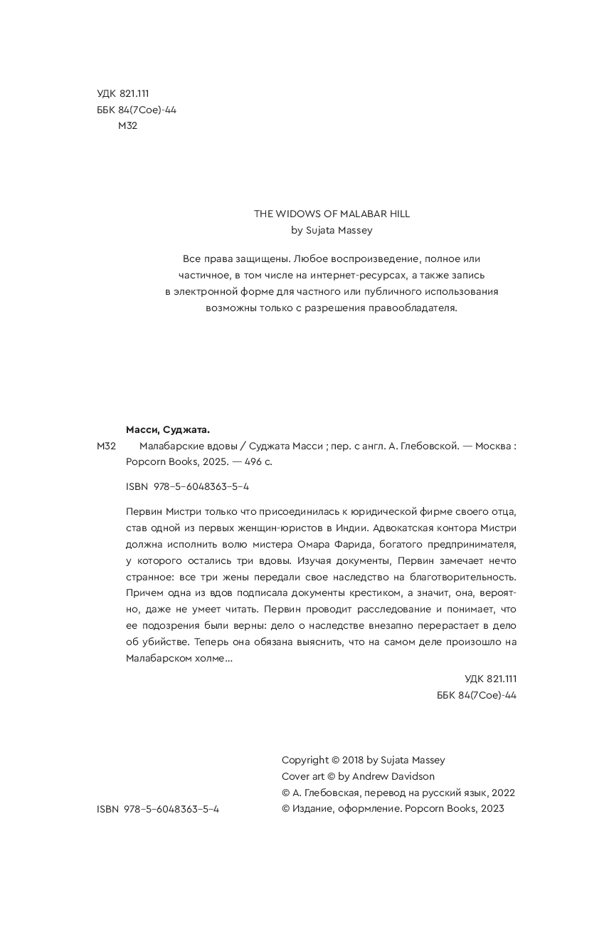Первин Мистри только что присоединилась к юридической фирме своего отца, став одной из первых женщин-юристов в Индии. Адвокатская контора Мистри должна исполнить волю мистера Омара Фарида, богатого предпринимателя, у которого остались три вдовы. Изучая документы, Первин замечает нечто странное: все три жены передали свое наследство на благотворительность. Причем одна из вдов подписала документы крестиком, а значит, она, вероятно, даже не умеет читать. Первин проводит расследование и понимает, что ее подозрения были верны: дело о наследстве внезапно перерастает в дело об убийстве. Теперь она обязана выяснить, что на самом деле произошло на Малабарском холме...