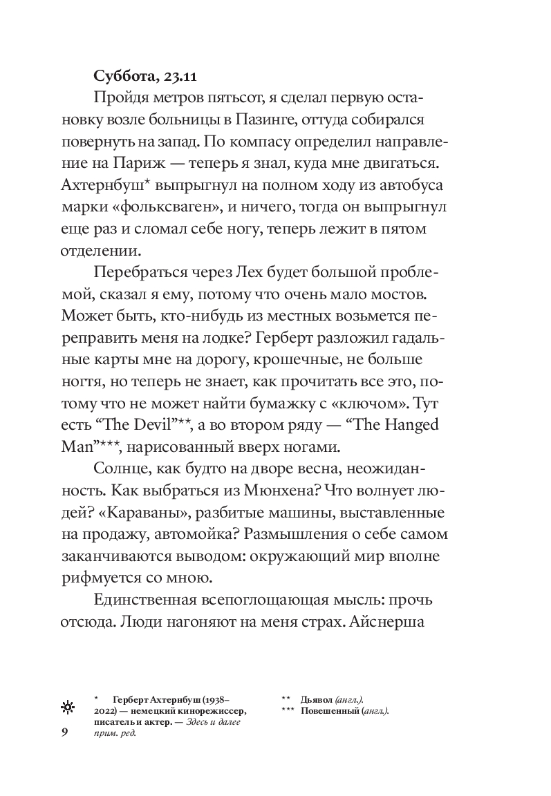 "О хождении во льдах" – документация этого ритуального похода, которую можно читать несколькими способами: это и проникновенное размышление о жизни и смерти, и медитативные зарисовки уходящей европейской натуры, и поток взбудораженного ходьбой сознания, и кино в прозе, напоминающее о том, что только в дороге мы обретаем покой.