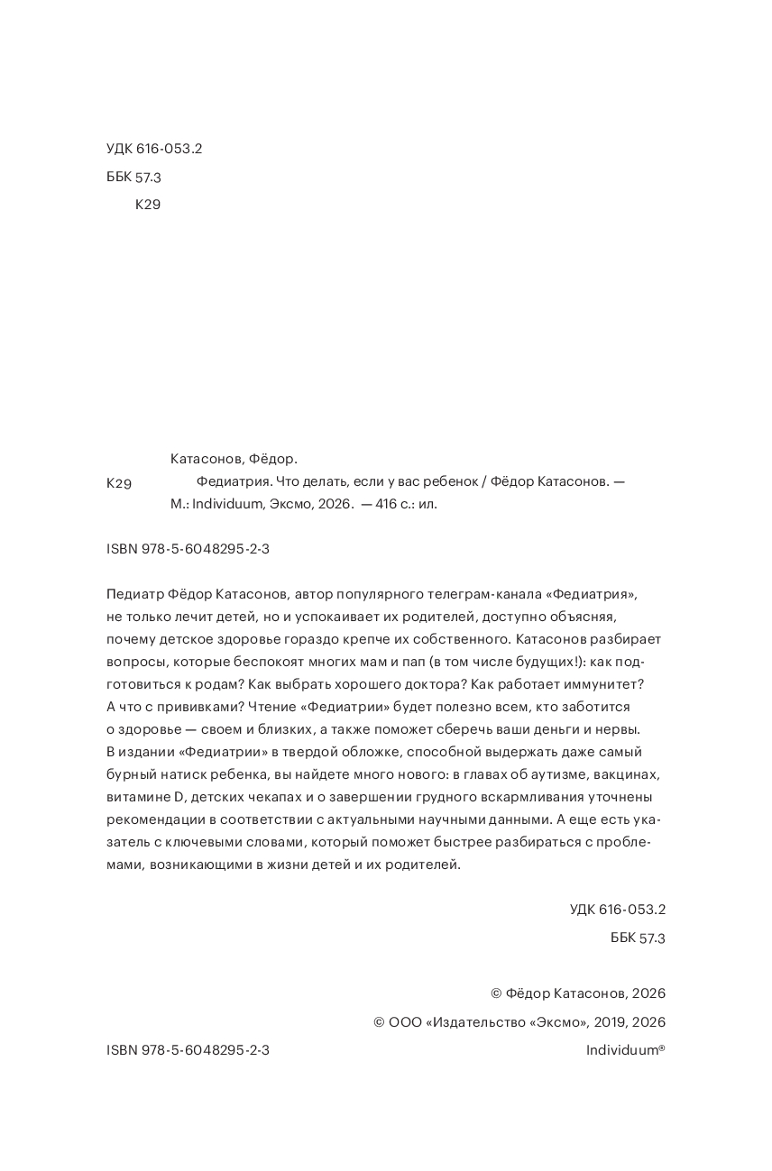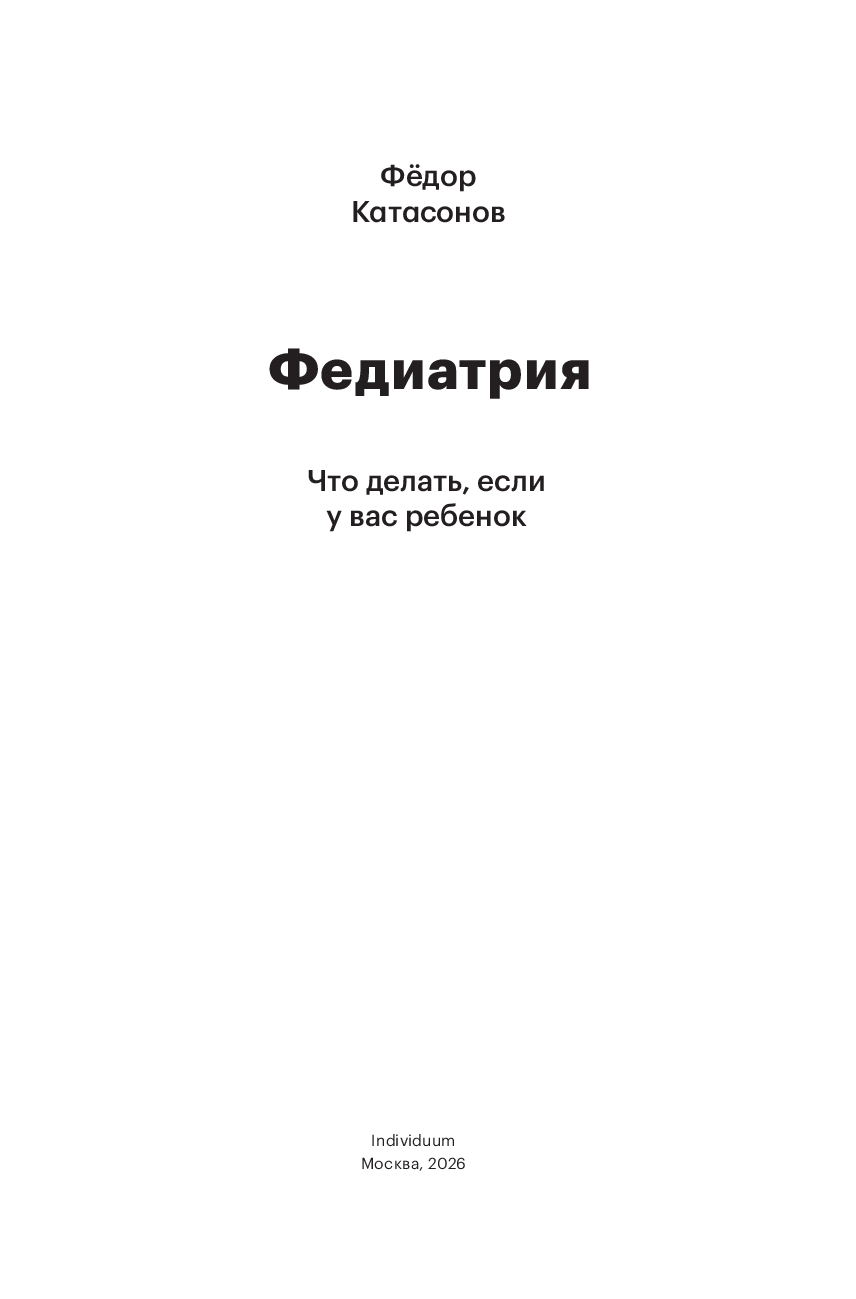 Московский педиатр Фёдор Катасонов не только лечит детей, но и успокаивает их родителей, доступно объясняя, почему детское здоровье гораздо крепче их собственного. Катасонов разбирает вопросы, которые беспокоят многих мам и пап: как подготовиться к родам? Как выбрать хорошего доктора? Как работает иммунитет? Почему необходимо делать прививки? Чтение "Федиатрии" будет полезно всем, кто заботится о здоровье – своем и близких, а также поможет сберечь ваши деньги и нервы.