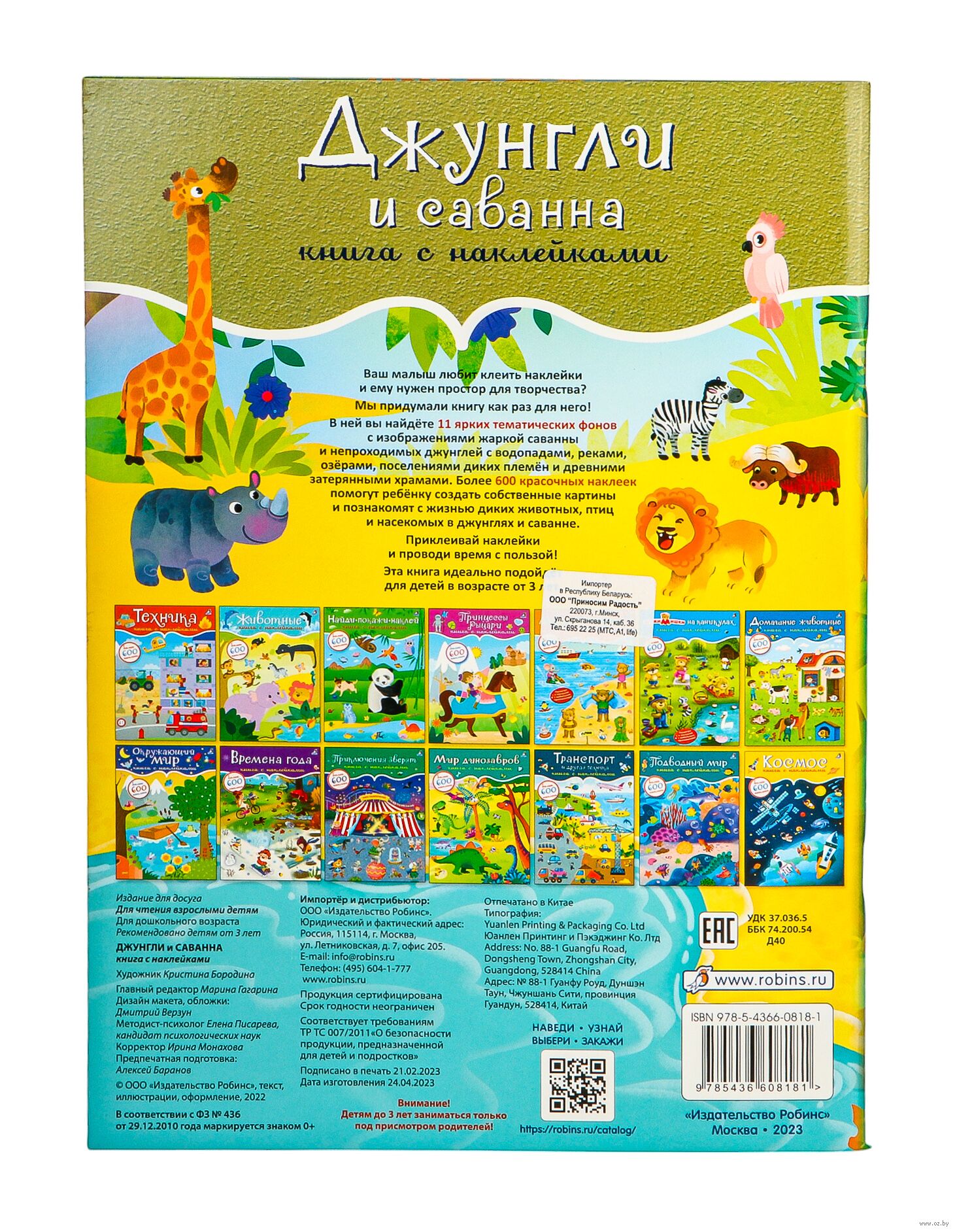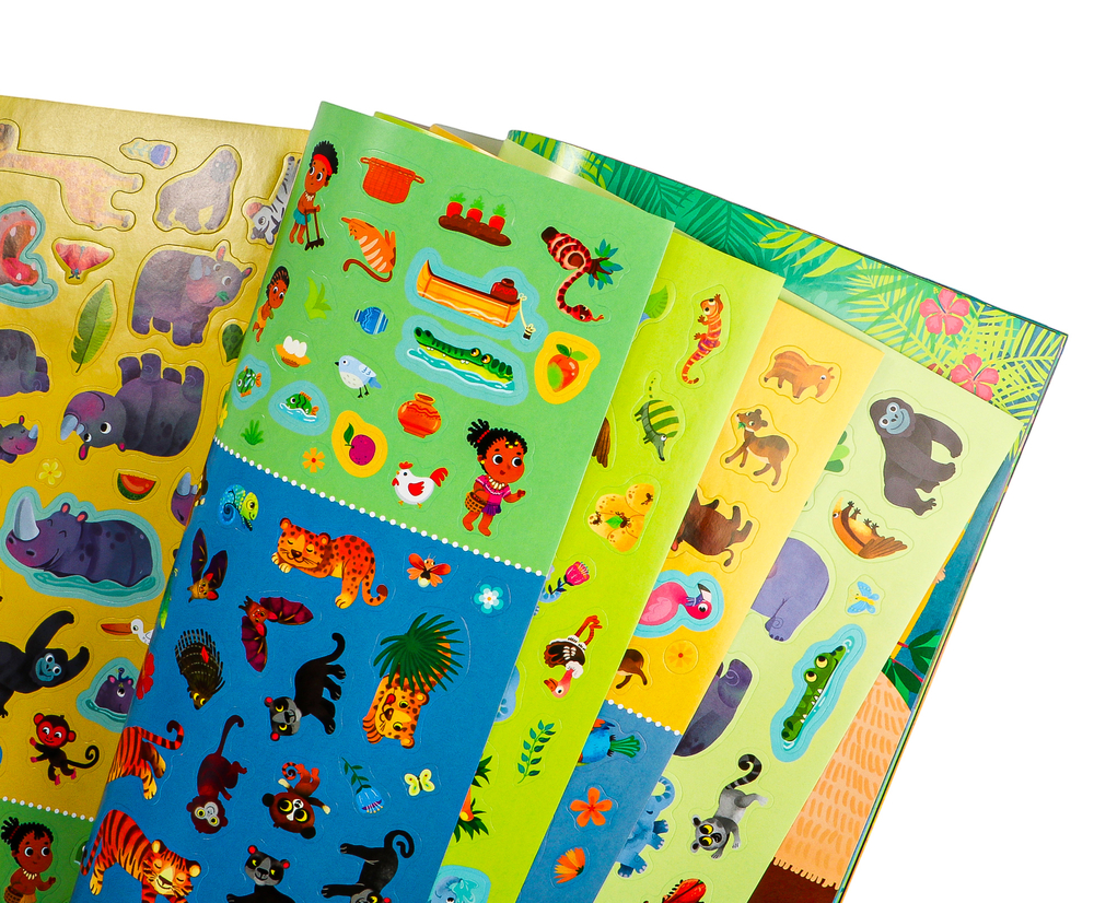 Более 600 красочных наклеек помогут ребёнку создать собственные картины и познакомят с жизнью диких животных, птиц и насекомых в джунглях и саванне.