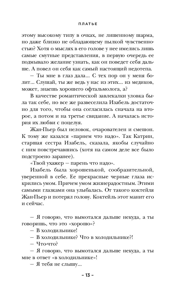 Однажды вечером, перед тем как накрыть на стол, Изабель дарит мужу платье. Она хочет, чтобы Жан-Пьер надел его к ужину. Он не может понять – это плохая шутка, жена заболела или мир так сильно изменился?