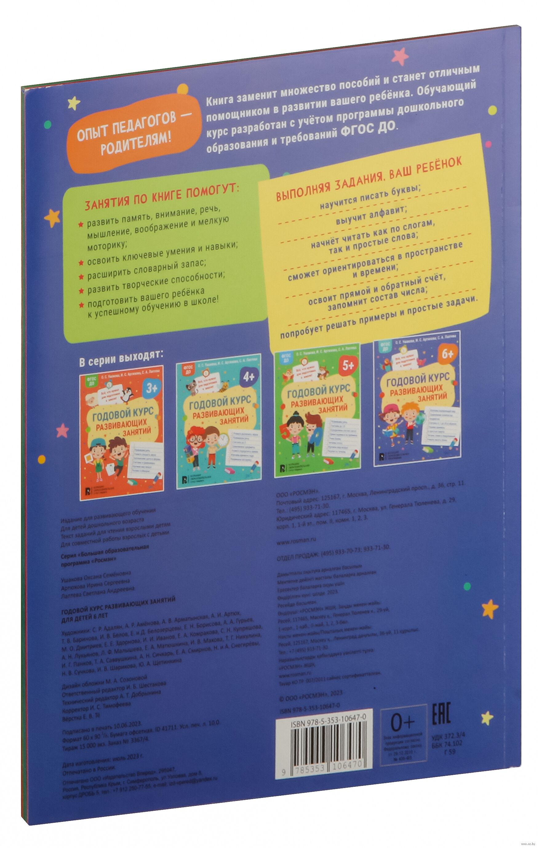 Годовой курс развивающих занятий для детей 6 лет