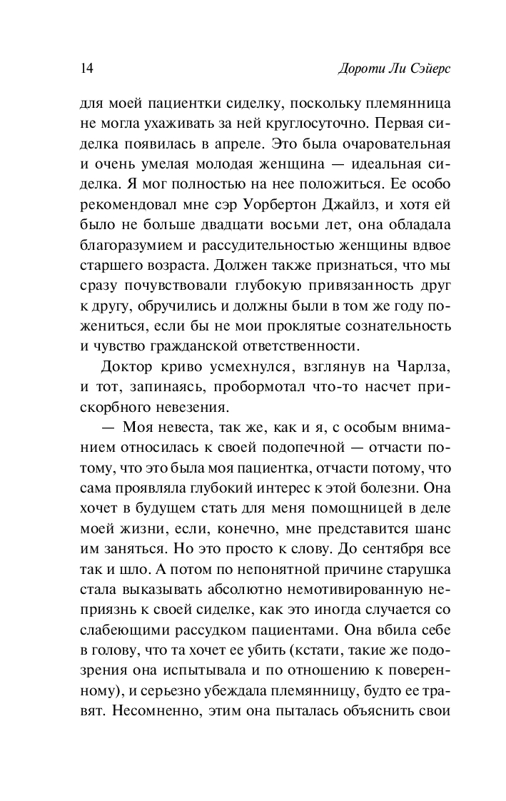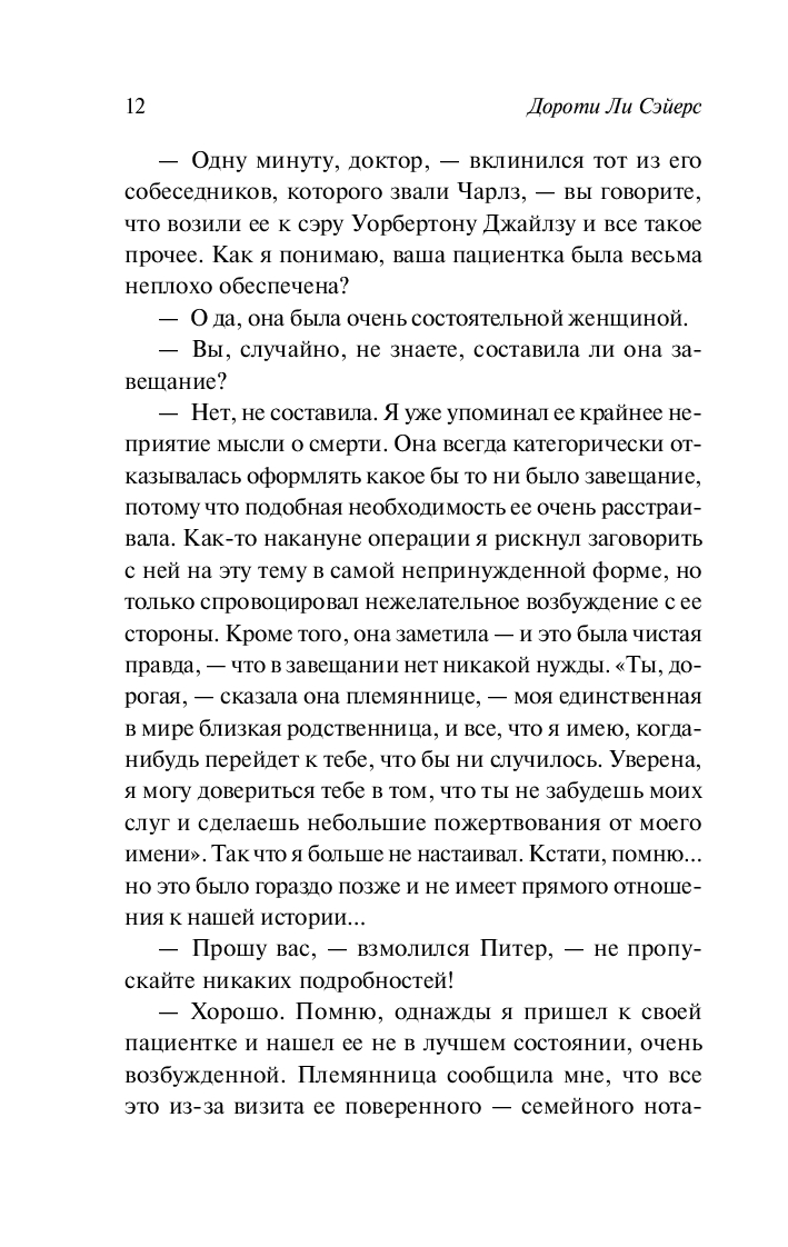 Питер Уимзи решает выяснить обстоятельства дела и обнаруживает, что мисс Доусон – лишь первая из жертв убийств, изощренно стилизованных под естественную смерть...