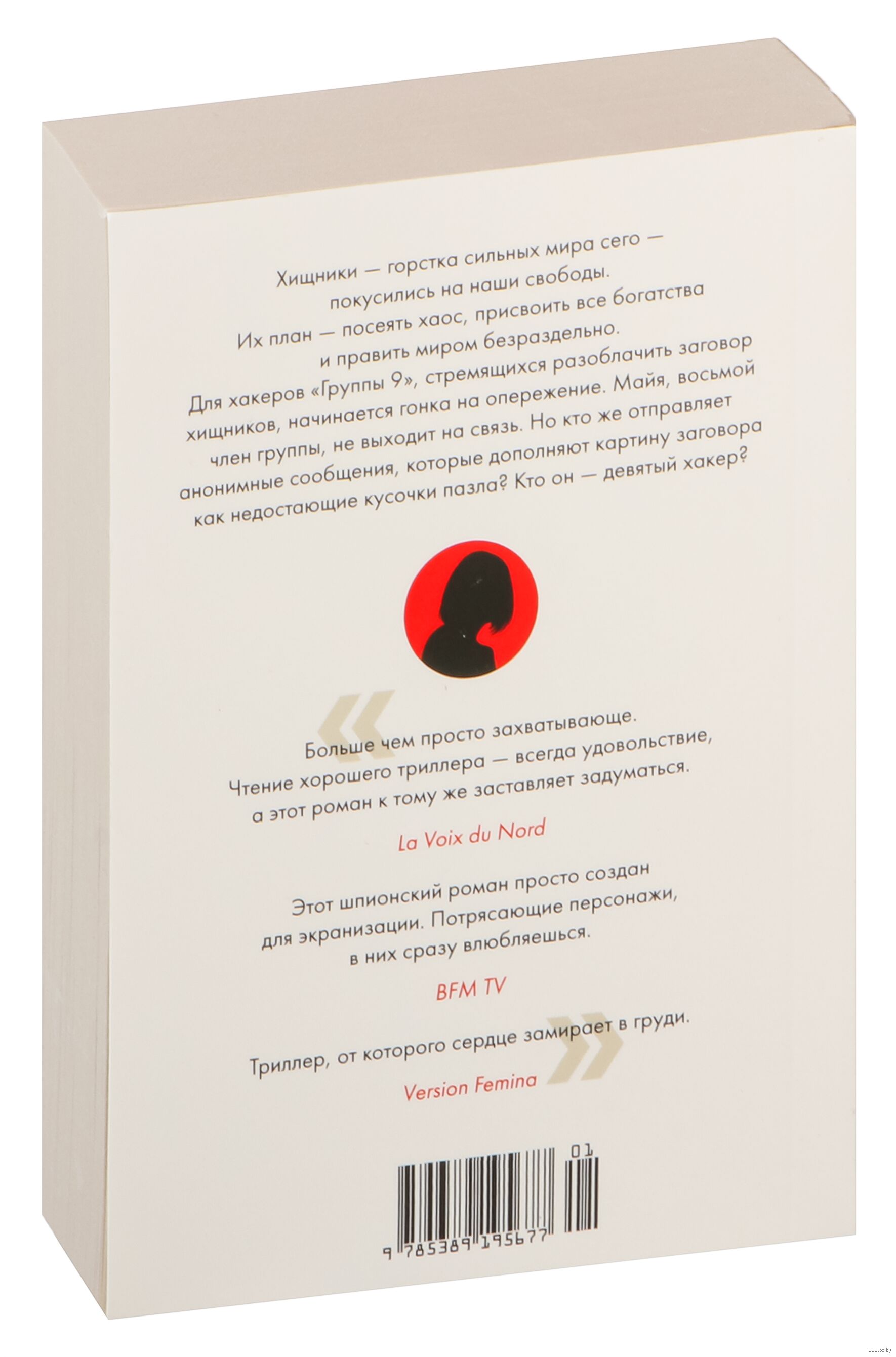 Марк Леви, самый популярный французский писатель в мире, снова радует нас приключениями благородных хакеров, разоблачающих заговор хищников – коррумпированных политиков и акул большого бизнеса. Робин Гуды цифрового мира, участники сверхсекретной "Группы 9" встречаются, чтобы совершить величайшую кибератаку в истории, однако в таинственный особняк приезжают только семеро. Майя, восьмой член "Группы 9", по-прежнему не выходит на связь, и на то есть причины. Но кто отправляет анонимные сообщения, которые дополняют картину заговора хищников как недостающие кусочки пазла? И кто в последнюю минуту предупреждает об опасности? Кто он, загадочный девятый хакер, и почему он не явился на общий сбор? Уникальный калейдоскоп городов и стран, рискованные приключения, опасные противники – и целая палитра чувств и острых ощущений.
