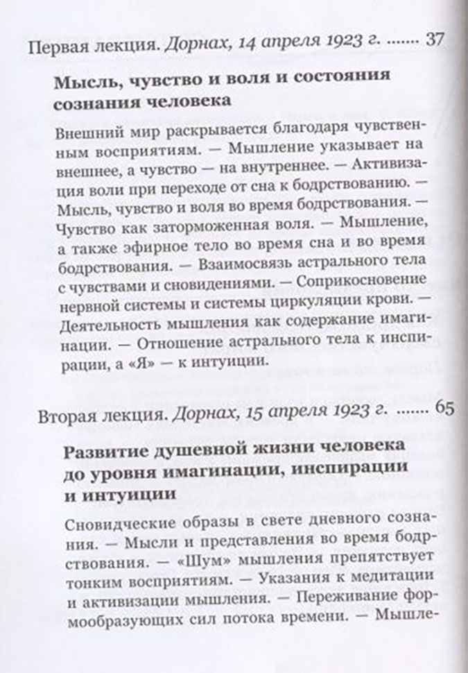 В книге собраны лекции, посвящённые теоретическим и практическим вопросам выработки сверхчувственных способностей у эзотерического ученика. Основатель современной духовной науки Рудольф Штайнер подробно, вплоть до физиологических деталей, поясняет механизм воздействия медитации на современного человека, указывает на особенности упражнений и объясняет их результат, открывая, по сути, путь к познанию духовного мира всем желающим. Этой тематической подборке предпослана лекция, обобщающая материал и важная для формирования целостной картины исторического развития эзотерических практик.