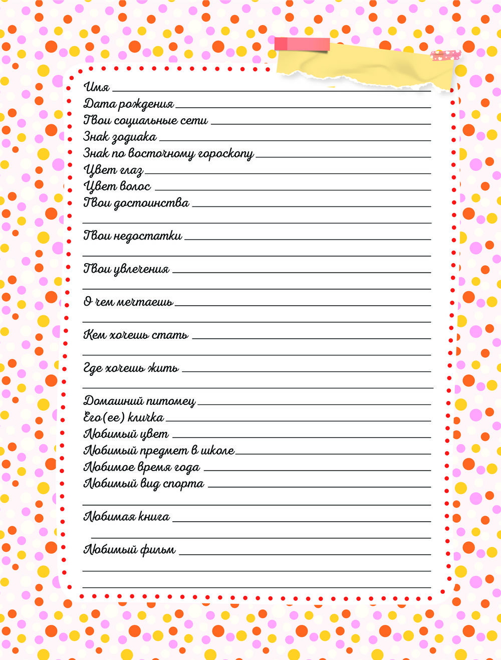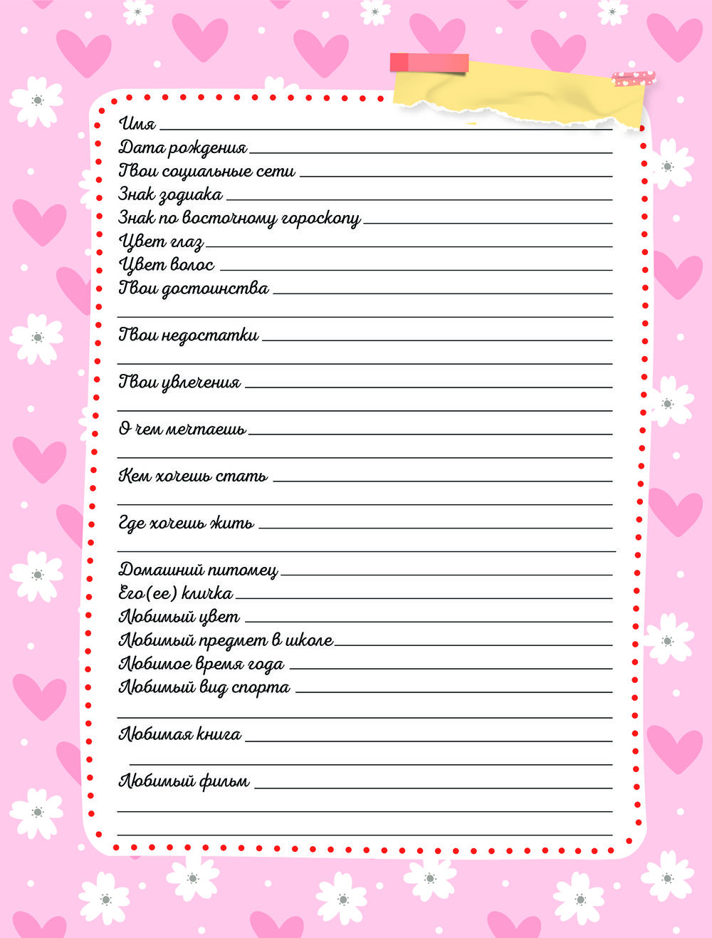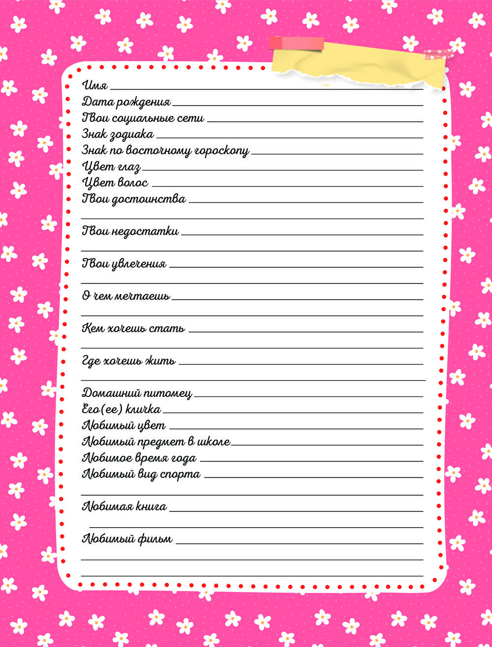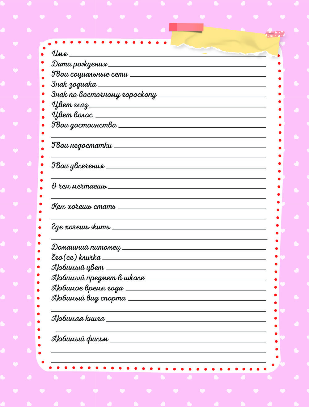 Дневничок с анкетами для друзей. BFF