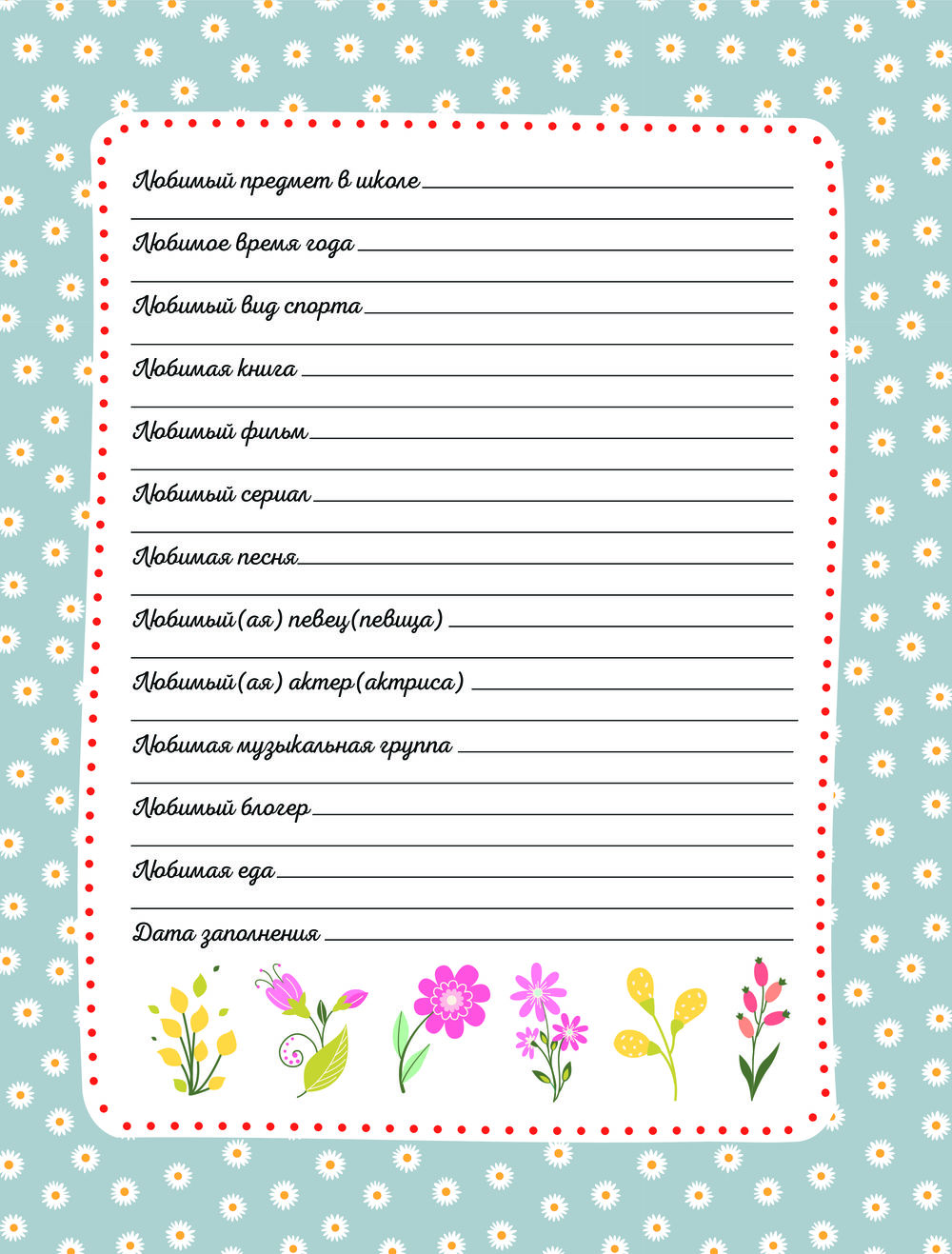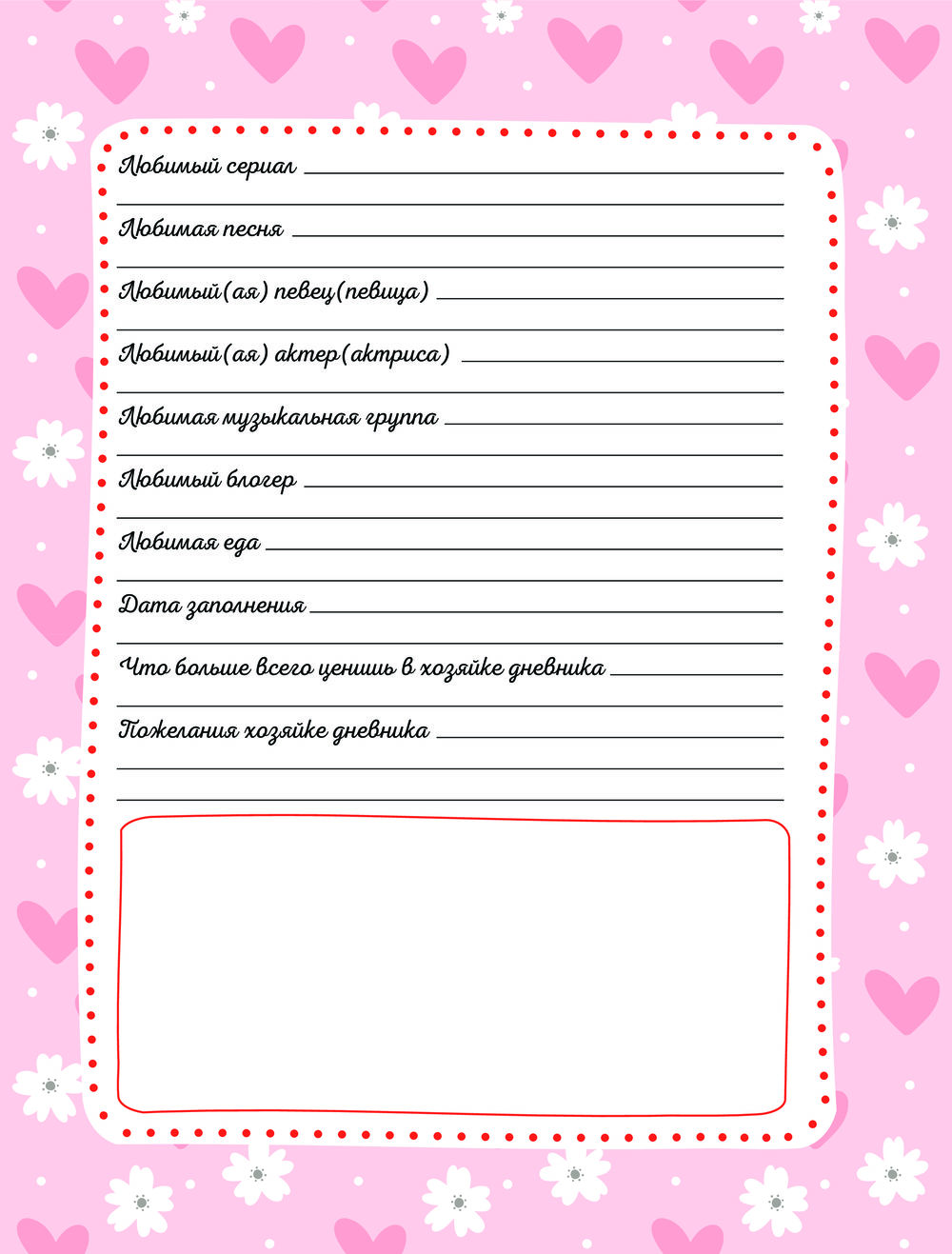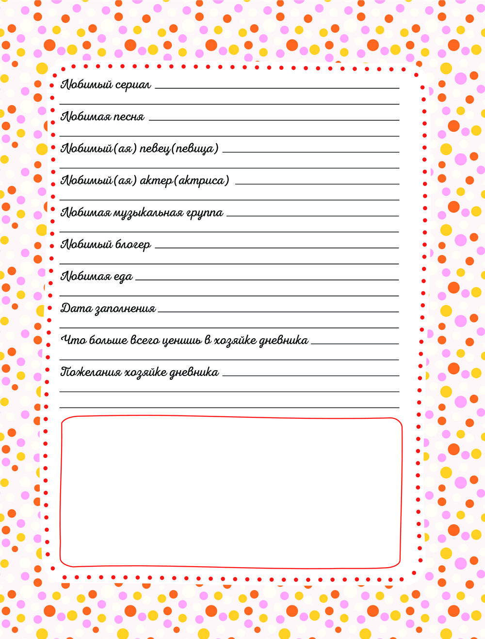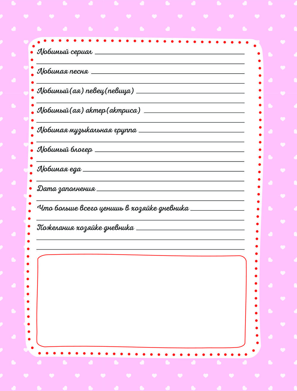 Дневничок с анкетами для друзей. BFF