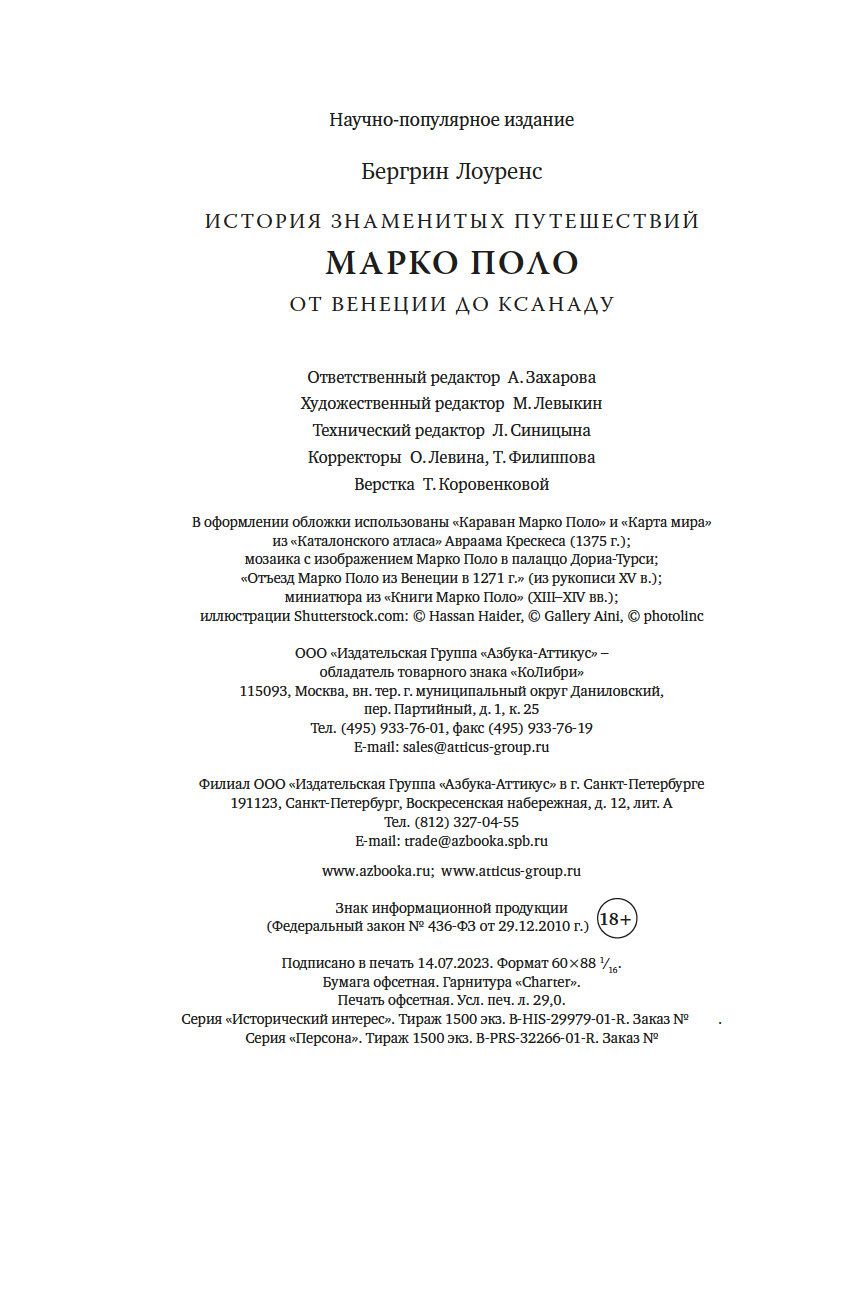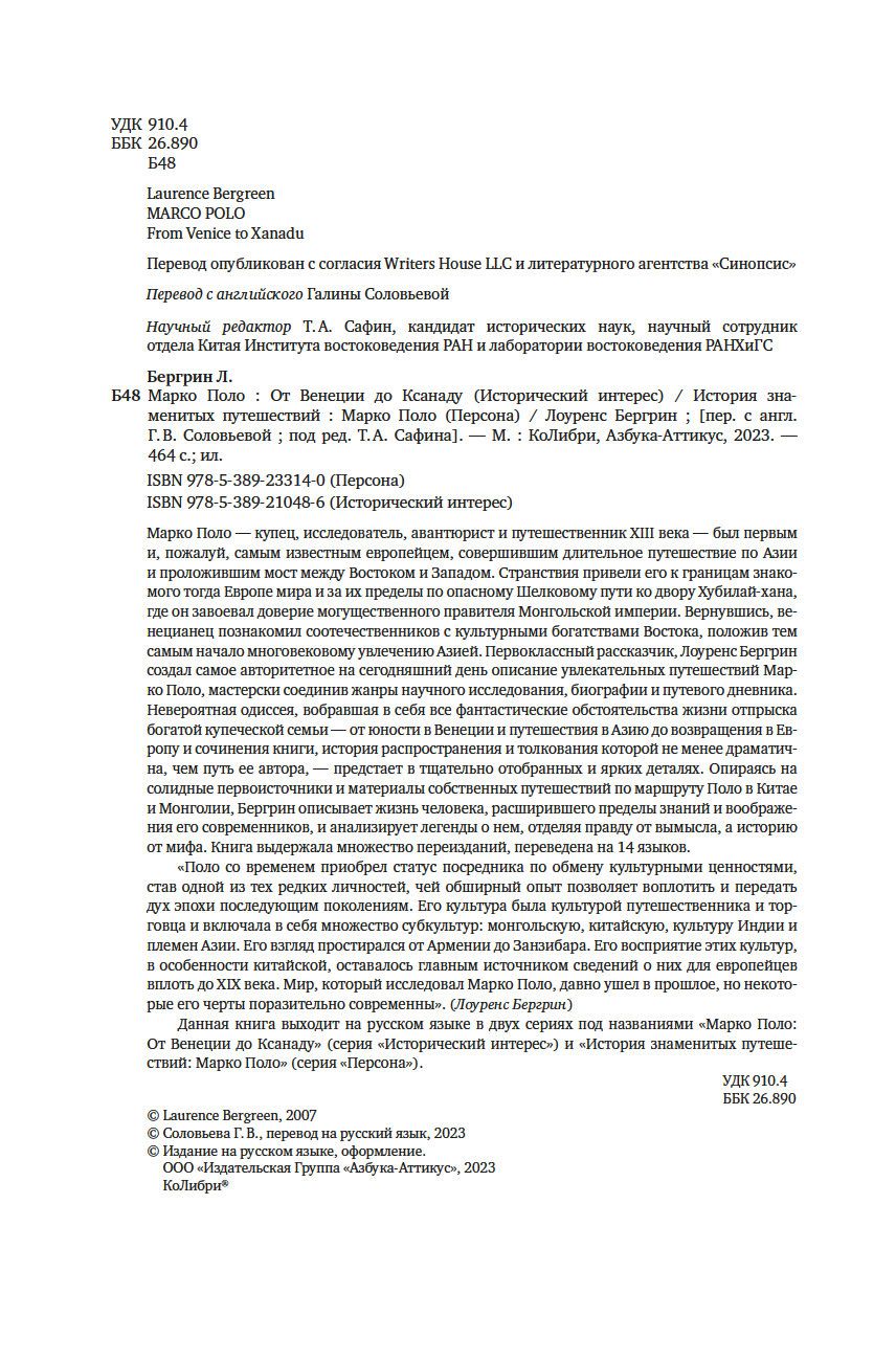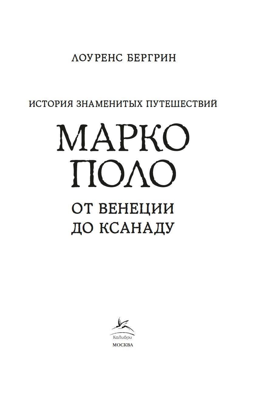 Данная книга выходит на русском языке в двух сериях под названиями "Марко Поло: От Венеции до Ксанаду" (серия "Исторический интерес") и "История знаменитых путешествий: Марко Поло" (серия "Персона").