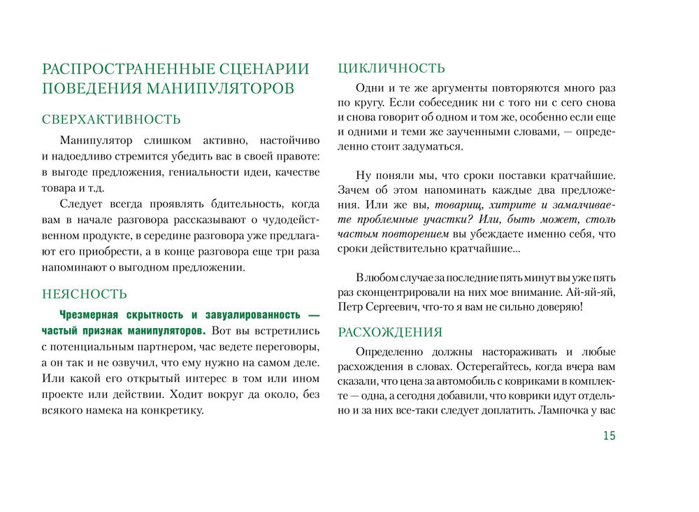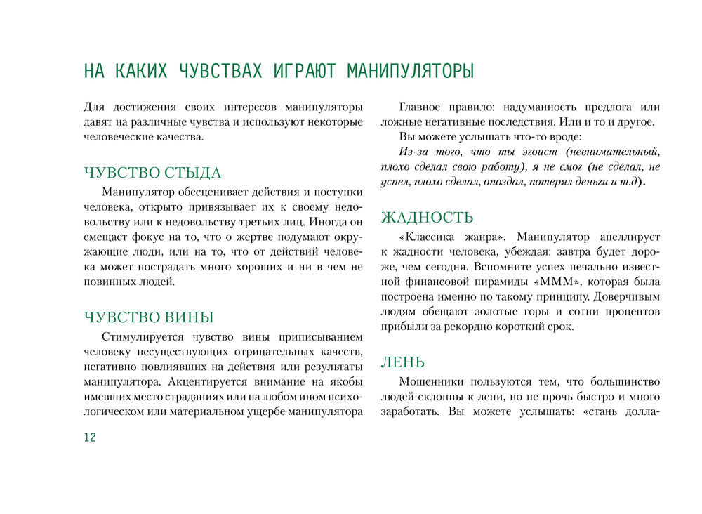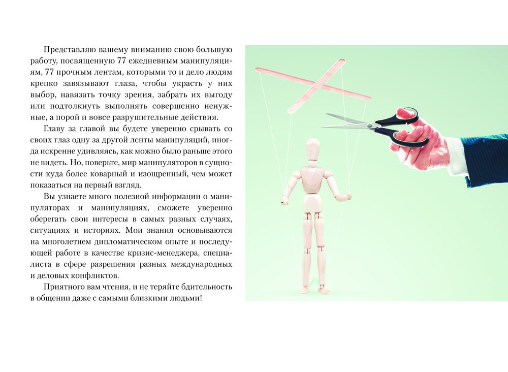 В книге последовательно и подробно описываются 77 мощных манипуляций, с которыми люди сталкиваются постоянно. Причем большинство приемов используют вовсе не мошенники, а люди из нашего окружения.