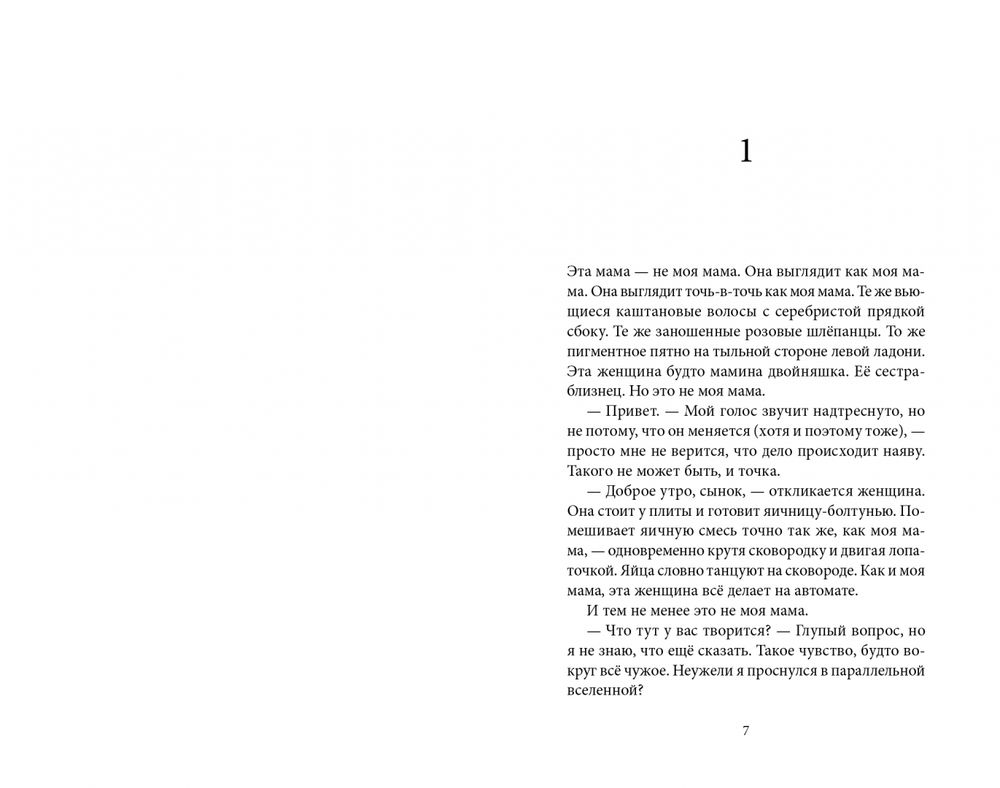 Четырнадцатилетнему Майклу нелегко дались перемены в семье – гибель отца и новое замужество матери. И мало того, что он должен посещать психолога, мириться с противным отчимом, заботиться о младших брате и сестре и хранить страшную тайну, однажды он обнаруживает, что его мать исчезла, а её место заняла точная копия. Никто этого не замечает, но для Майкла подмена очевидна.