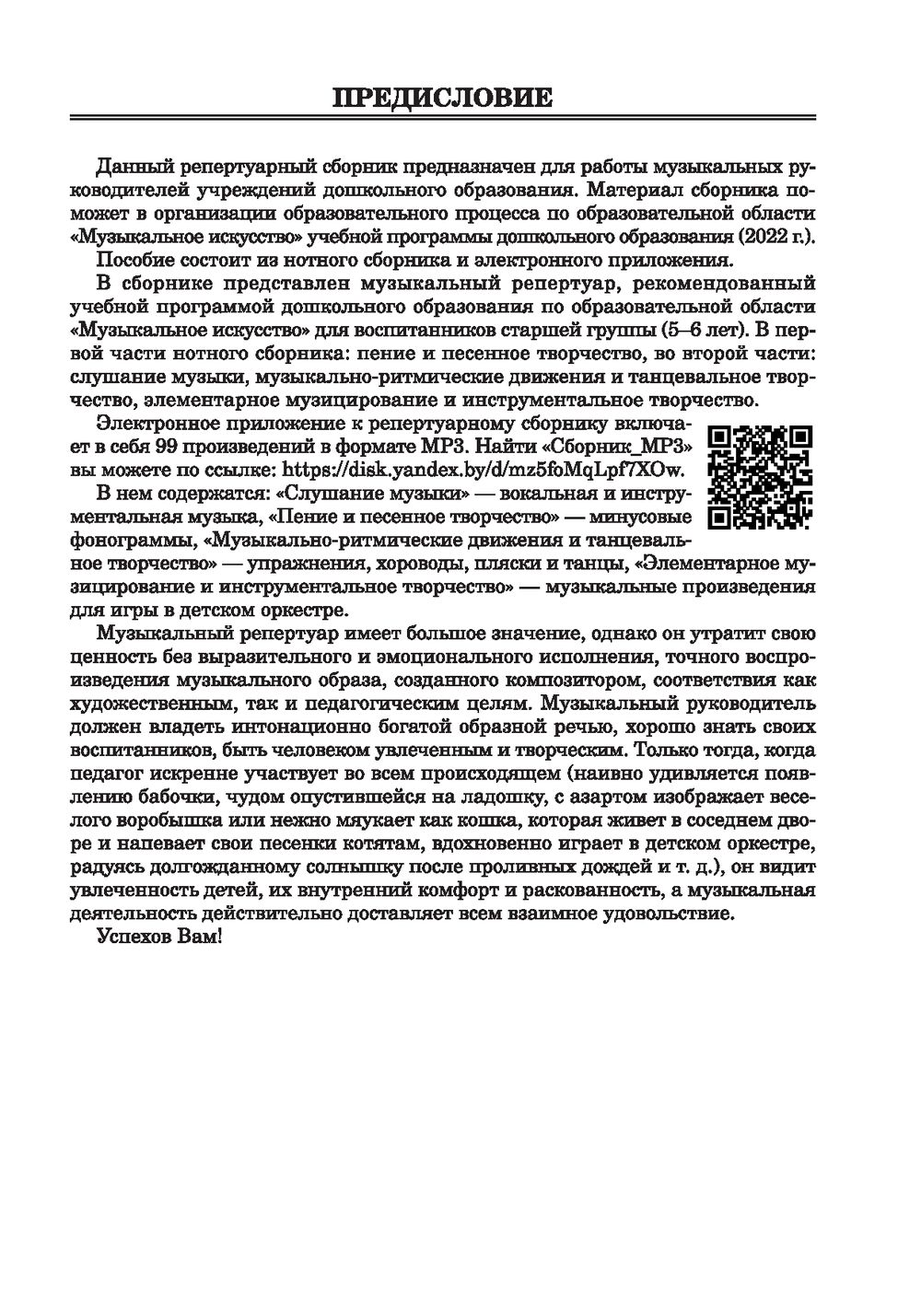 Репертуарный сборник с электронным приложением. Образовательная область "Музыкальное искусство". Старшая группа 5-6 лет. Часть 1