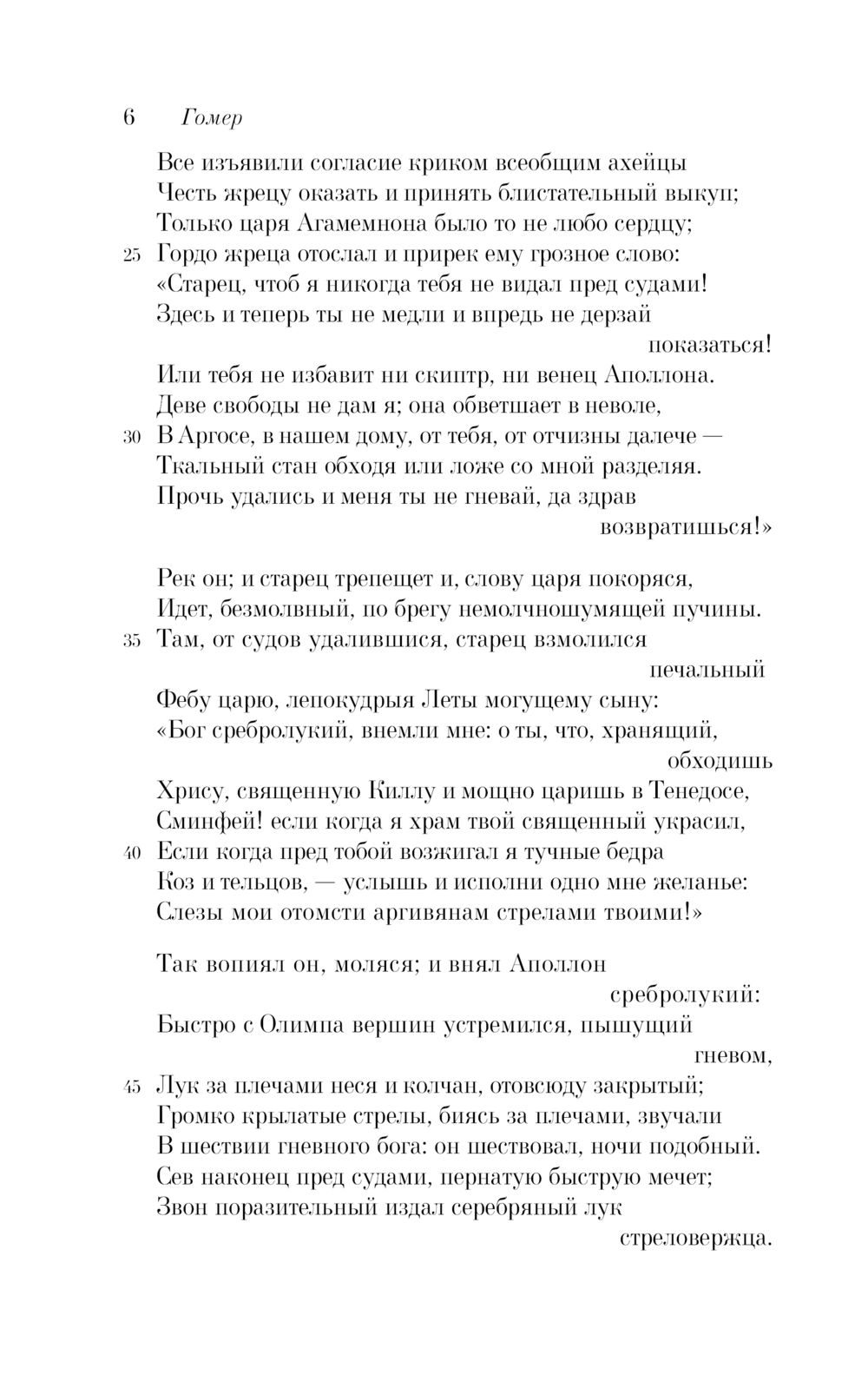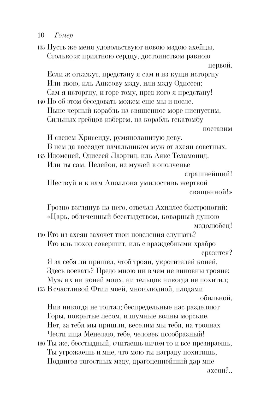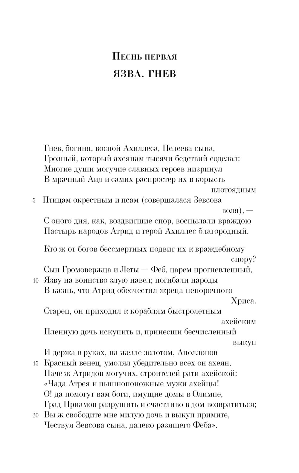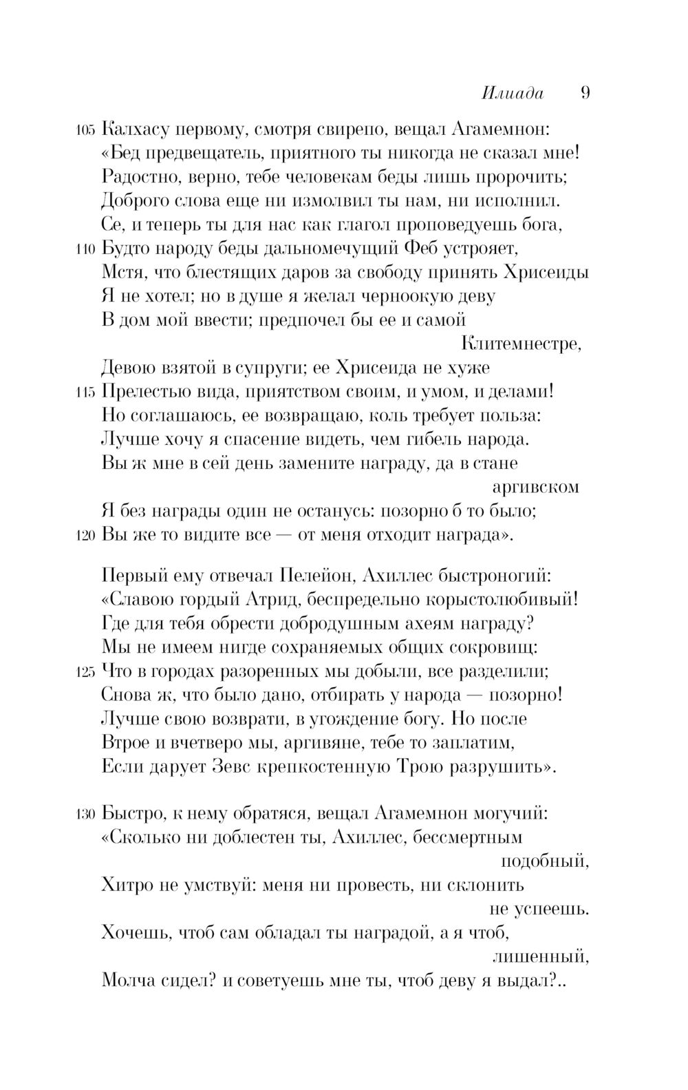 Текст всемирно известной поэмы, стоящей у истоков европейской литературной традиции, дан в знаменитом переводе Н.И. Гнедича, сумевшего передать «простоту, силу и важное спокойствие» языка Гомера.