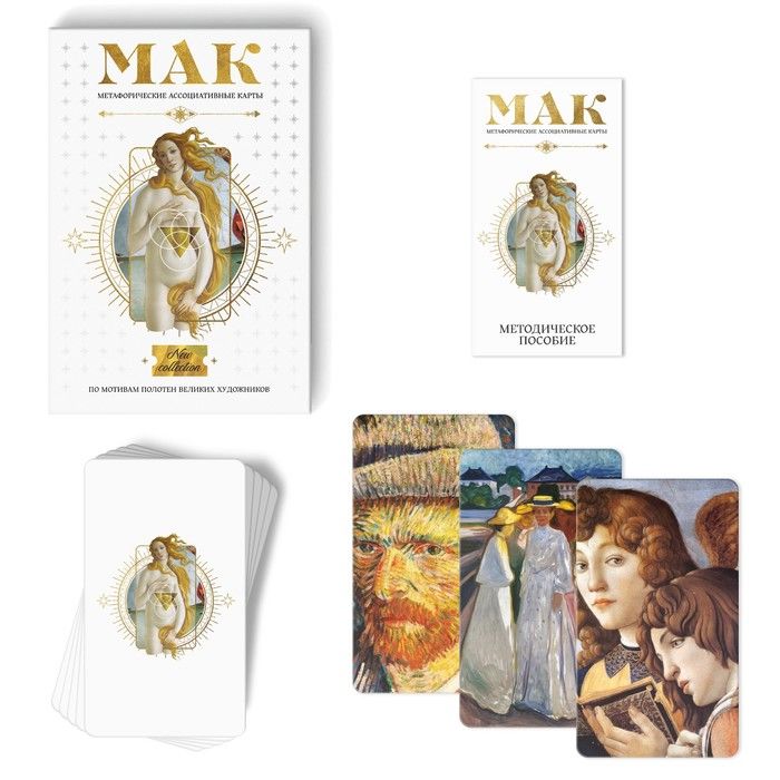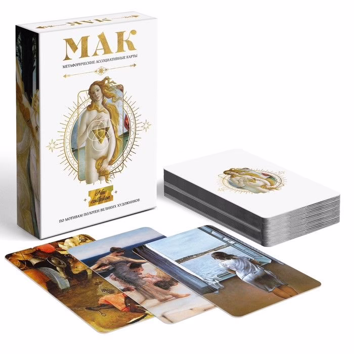 Метафорические ассоциативные карты (МАК) – это набор иллюстраций, на которых вас ждут полотна великих художников с разнообразными сюжетами. Образы на этих картах становятся метафорой человеческих ценностей, страхов, желаний. Также они могут быть ассоциативно связаны с нашим внутренним опытом.