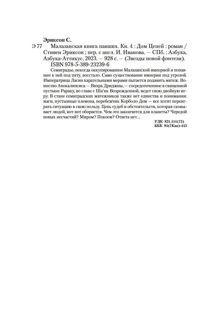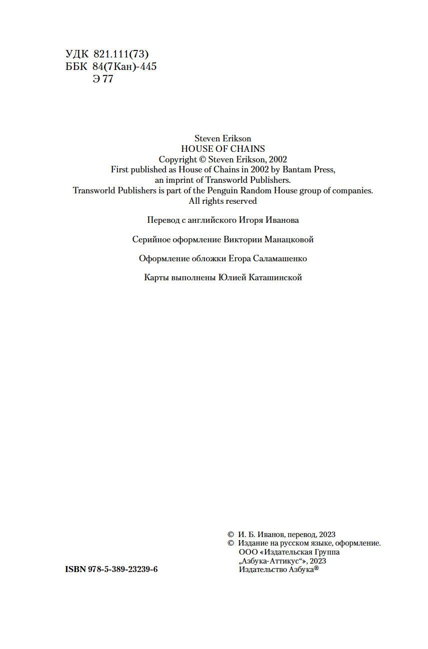 | Название в оригинале | Book Four of The Malazan Book of the Fallen. House of Chains |