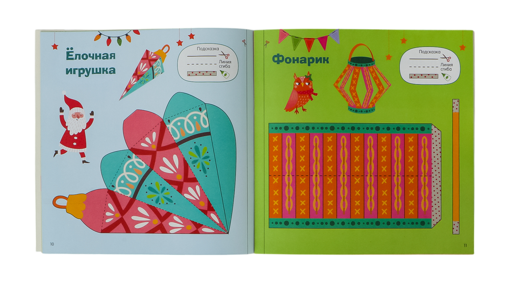 Рекомендую эту книгу для занятий с детками. Это увлекательно, интересно, весело. Внучке 4 годика. С каким удовольствием она старательно вырезает, склеивает новогодние игрушки! Некоторые фигурки выбрала для украшения ёлки в детском саду. Работать с книгой очень приятно: великолепно иллюстрирована, прекрасное качество бумаги, выкройки удобны для вырезания маленькими ручками. Пусть и в вашем доме появятся ёлочные украшения, согретые детскими ручками и детской радостью!