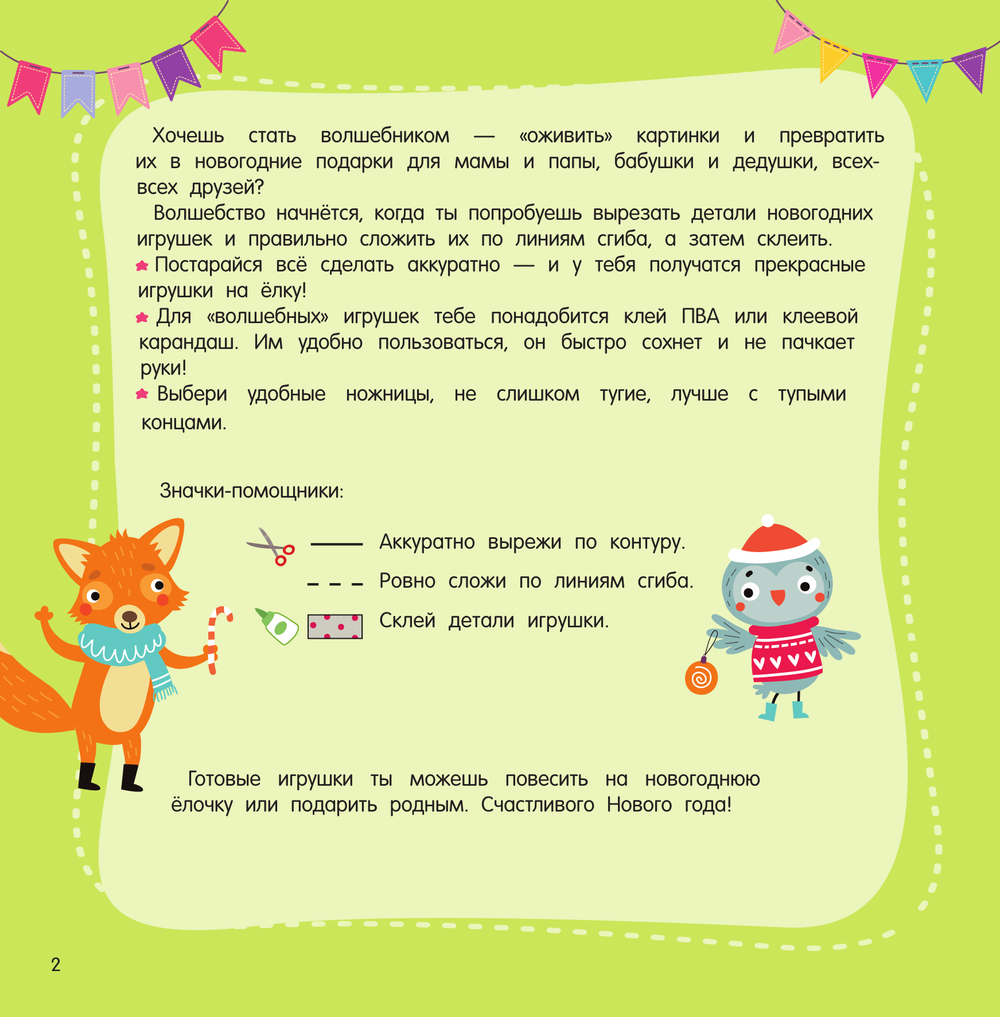 Ярко иллюстрированная книга "Новогодние игрушки. Вырезай и клей. Сделай сам" – прекрасный подарок ребёнку накануне Нового года. На каждой странице – подробные и понятные ребёнку инструкции. Малыш сможет своими руками сделать фигурки Деда Мороза и Снегурочки, рождественские венки и праздничные гирлянды, ажурные снежинки и симпатичные фонарики. Это не только весёлое, но и полезное занятие поможет развить мелкую моторику, внимание, воображение, фантазию, художественный вкус и любовь к творчеству. Формат книги – "волшебный квадрат".