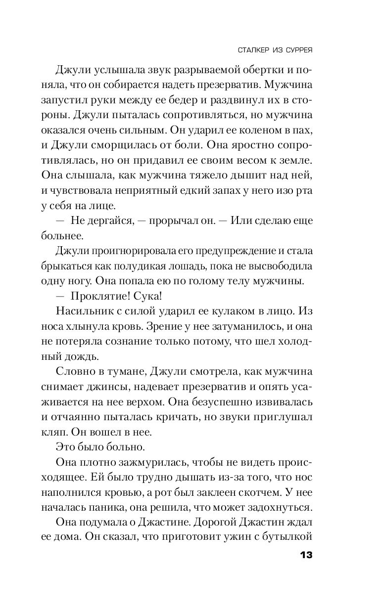 Для молодого и амбициозного инспектора Роба Миллера это первое серьезное расследование. Он должен во что бы то ни стало предотвратить очередное нападение. У детектива есть только составленный профиль маньяка и его особый почерк, которым тот любит метить своих жертв. В этом деле нельзя терять ни минуты, ведь уже началась новая охота.