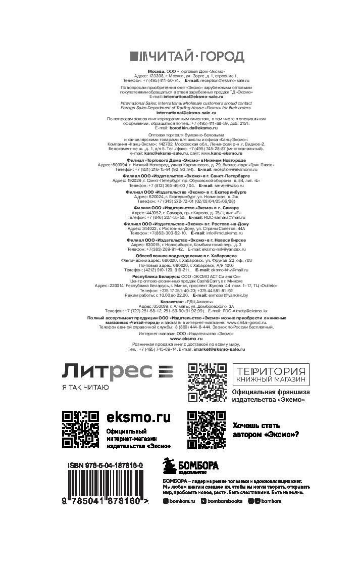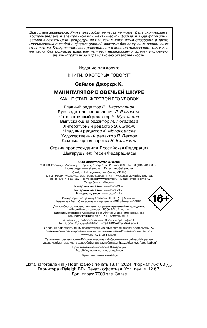 | Изготовитель | ООО "Издательство "Эксмо", 123308, Россия, город Москва, улица Зорге, дом 1, строение 1, этаж 20, каб 2013 |