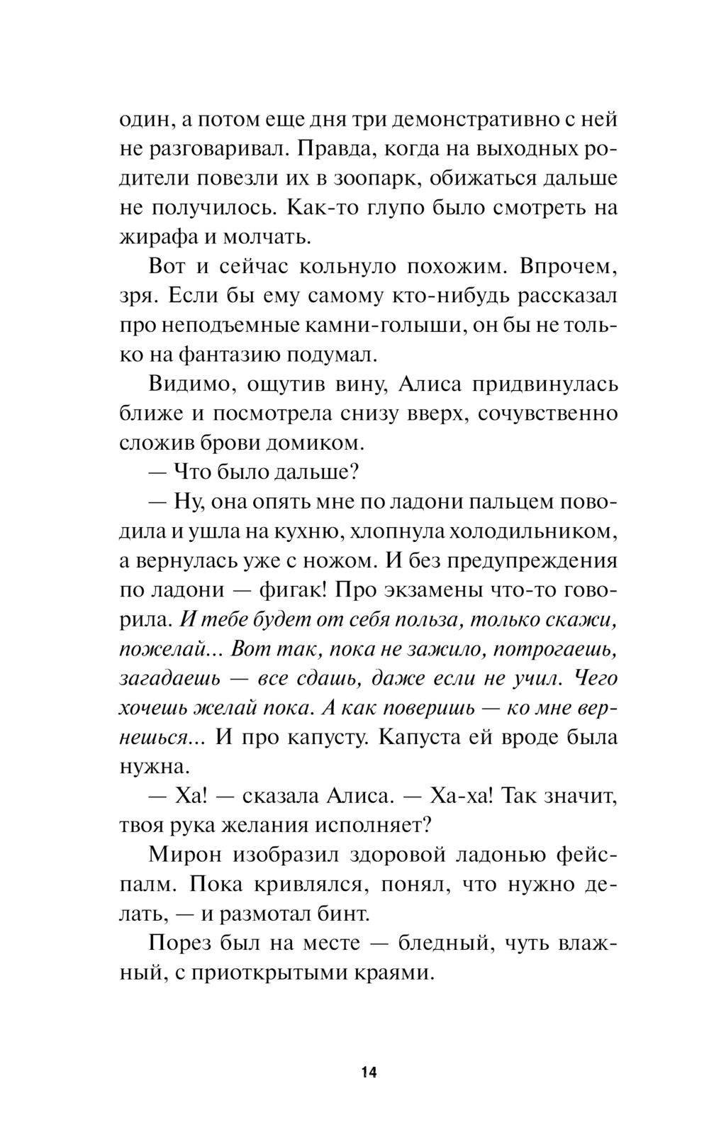 Мирон Отдельнов живет в подмосковном Видном, дружит с соседкой Алисой и готовится к ЕГЭ. Вроде бы все идет по плану (не самому продуманному, но какой есть), пока однажды он не решает помочь старушке дотащить до дома сумку... Так Мирон случайно поступает в подмастерья к ведьме и узнает, что может исполнить любое желание. Главное, принести "жертвочку". Вот только стоят ли эти желания встреч с опасной и хитрой городской нечистью? Ведь каждая такая встреча может оказаться последней.