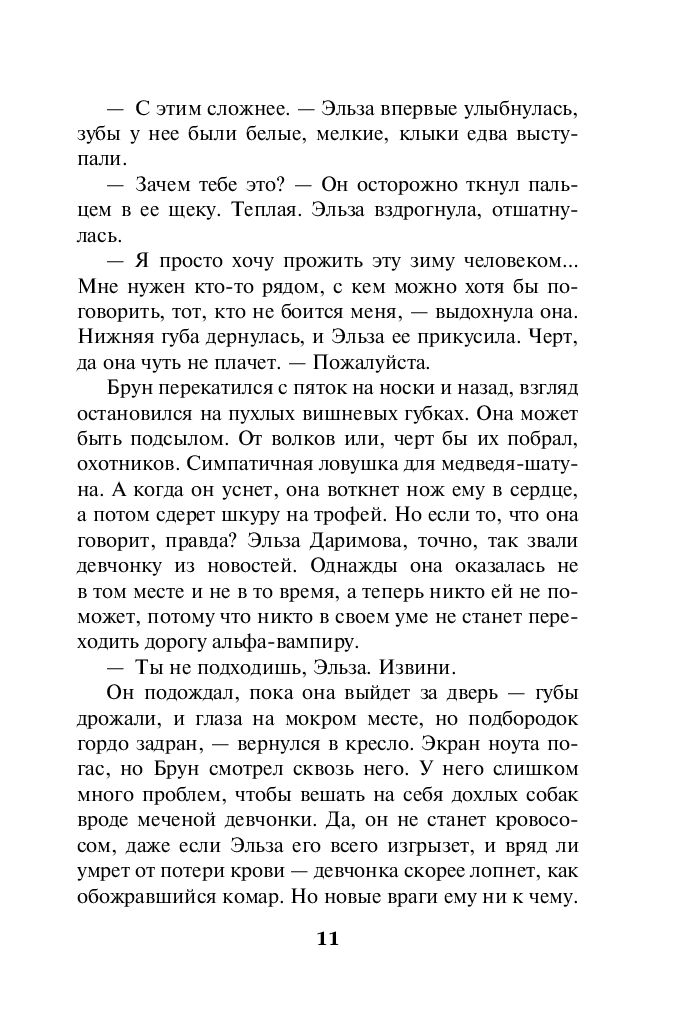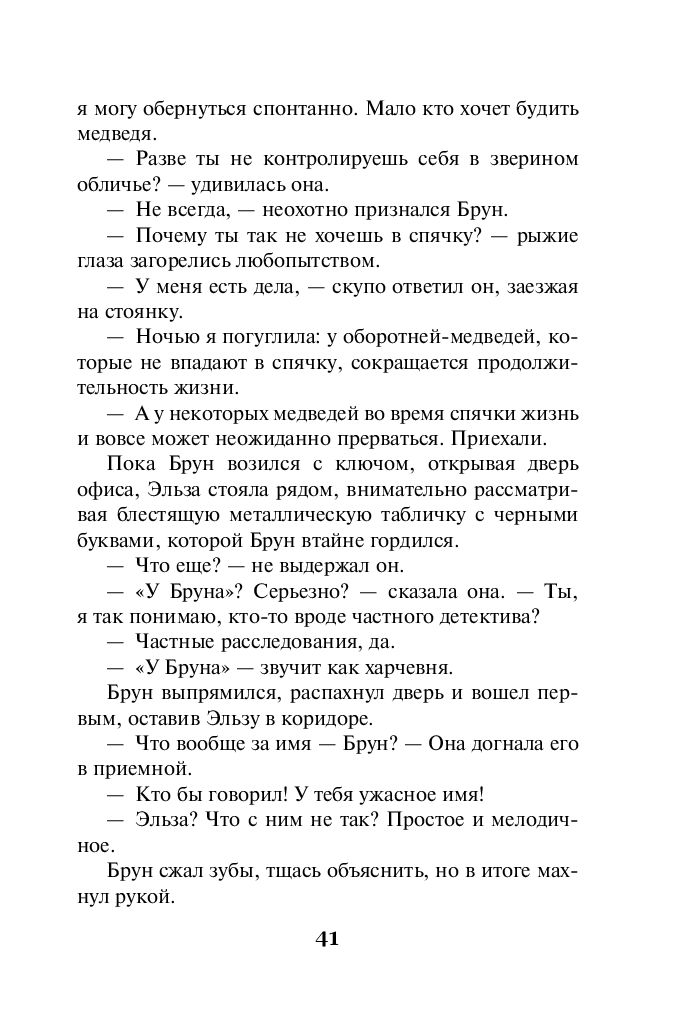 Брун – медведь-оборотень с желтой меткой потенциально опасного. Эльза – девушка из высшего общества, студентка музыкальной академии. Они никогда бы не встретились и уж тем более не стали жить вместе, но встречу инициировал вампир, и вся благополучная жизнь покатилась под откос.