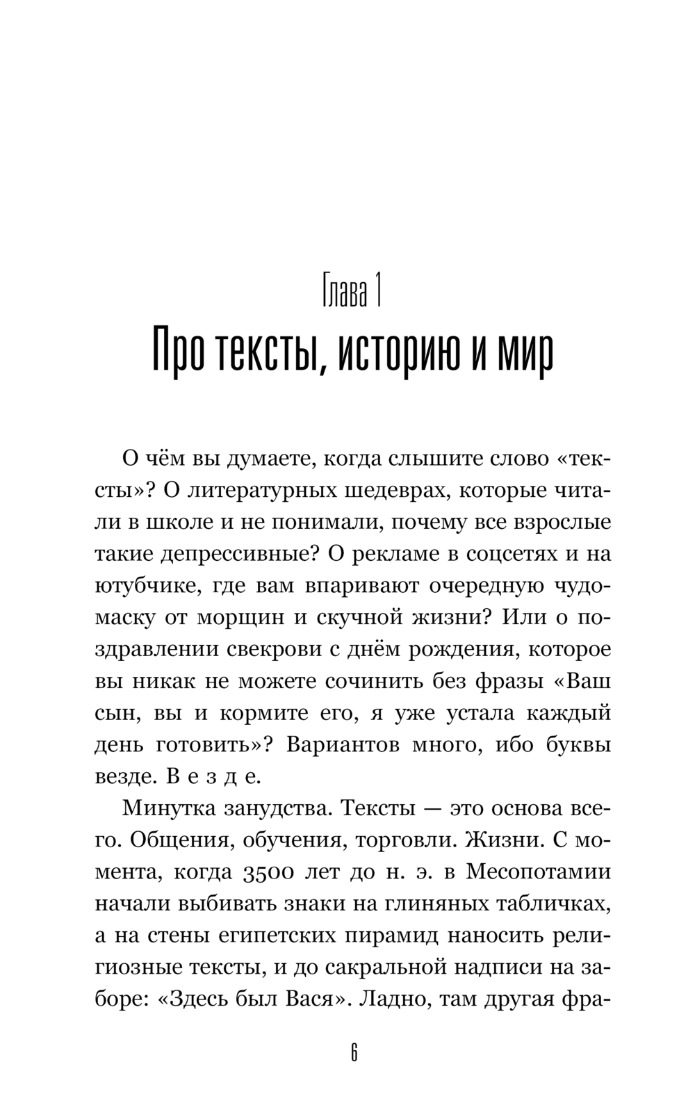 Книга "Власть текста" о буквах, которые окружают вас на работе, в блогах, в бесконечных чатах и даже дома. Книга о словах, с помощью которых вы можете мягко управлять людьми и миром. Книга о текстотерапии, которая познакомит вас с собой настоящим. А ещё о том, как звучать убедительно и ярко. Всегда.