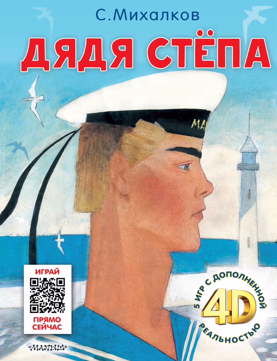 В книгу С. Михалкова "Дядя Стёпа" вошли три части поэмы о самом главном великане: "Дядя Стёпа", "Дядя Стёпа – милиционер" и "Дядя Стёпа и Егор". В каждой части этой поэмы дядя Стёпа совершает подвиги, которые под силу каждому: помощь ближнему, спортивные достижения, забота о близких. И такой друг может появиться у тебя дома, ведь это необычная книжка, а с дополненной реальностью 4D! Теперь с дядей Стёпой можно играть, путешествовать, помогать совершать подвиги и потренировать его сына-космонавта перед отправкой в космос!