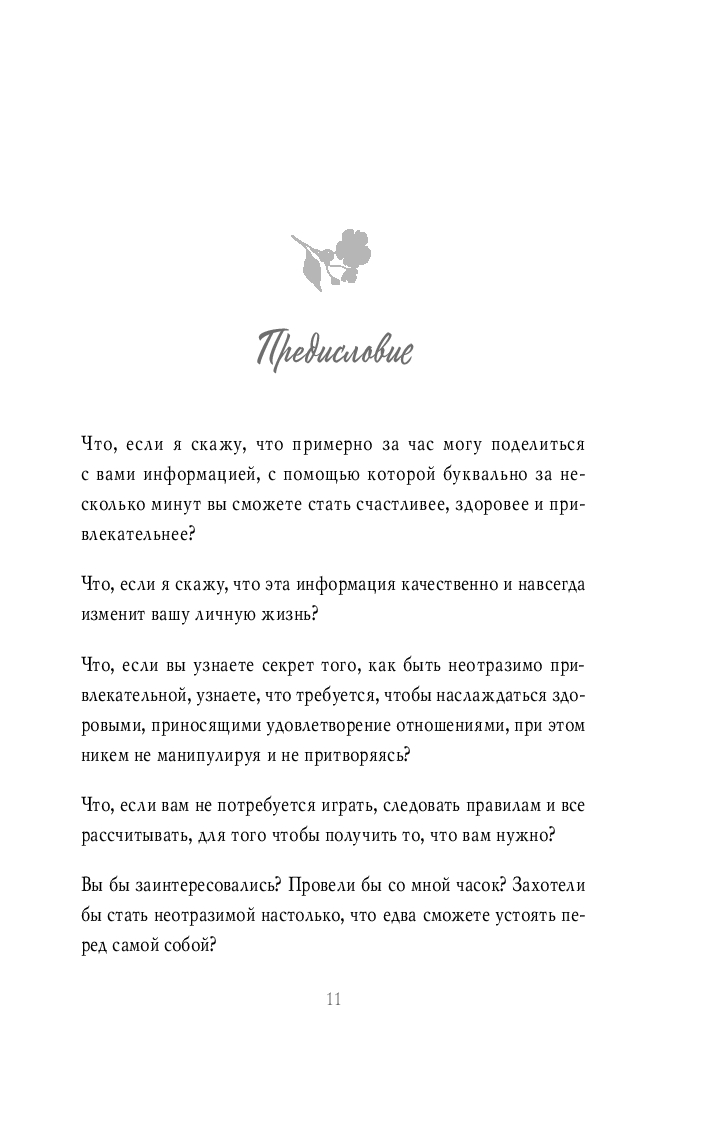 Давайте кое-что проясним. Книга, которую вы держите в руках, не похожа ни на одну из прочитанных вами прежде книг об отношениях. Никаких правил, никаких списков того, что нужно сделать, чтобы окольцевать мужчину за тридцать дней, и никаких причин винить себя в том, что "он не так уж сильно влюблен", просто не существует. Вы можете спокойно выкинуть всю литературу с подобным содержанием.