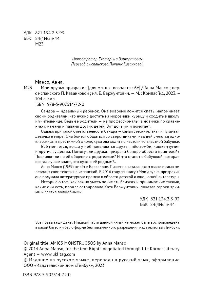 Всё меняется, когда у неё появляются друзья: пёс-зомби, кошка-мумия и другие существа. Помогут ли друзья-призраки Сандре обрести приятелей? Повлияют ли на её общение с родителями? И что станет с бабушкой, которая всегда лучше знает, что нужно её родным?..