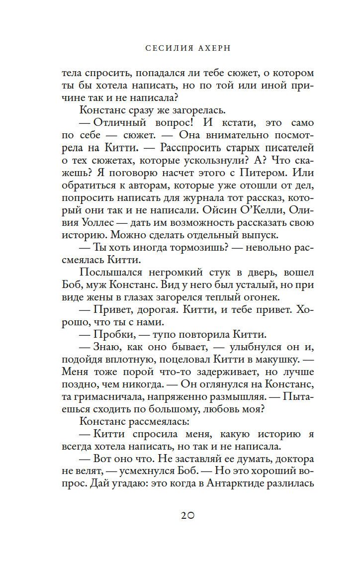 "Каждый, каждый человек на свете может рассказать свою собственную историю. У каждого, самого обычного человека – необычная история. Люди думают, будто они ничем не замечательны, будто их жизнь обыденна и скучна, раз о них не пишут в передовицах, они не получают международных премий и не совершают подвигов, но на самом деле каждый совершает что-то хорошее, удивительное, какой-то отважный поступок, что-то, чем может гордиться. Каждый день – и никто этого не замечает. Вот о чем надо писать. О невоспетых героях, о людях, которые себя и героями-то вовсе не считают, просто делают то, что надо делать. У каждого есть своя история". (Сесилия Ахерн)