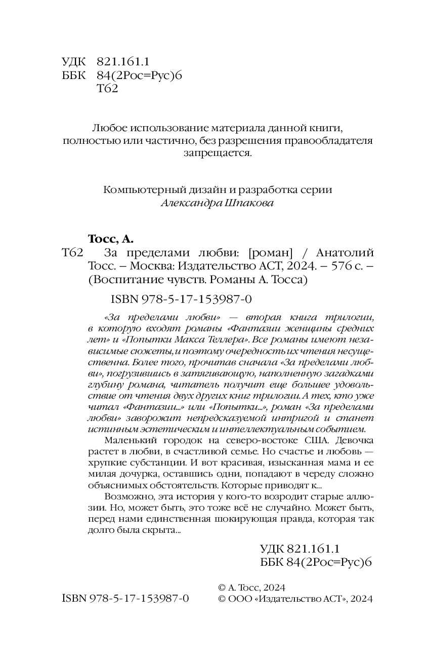 | Серия | Воспитание чувств. Романы А. Тосса |