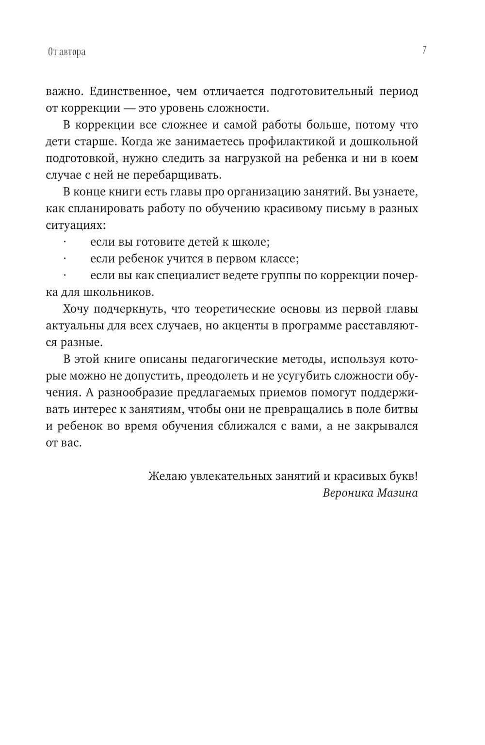 С другой стороны, если уже в школе что-то пошло не так, если занятия вызывают напряжение и негатив, то в книге есть материал для оказания помощи школьникам, которым трудно овладевать письмом. Разнообразие предлагаемых приемов поможет родителям и педагогам поддержать у детей интерес к занятиям, чтобы процесс обучения не превращался в поле битвы, а сближал вас с ребенком и давал уверенность в собственных силах.