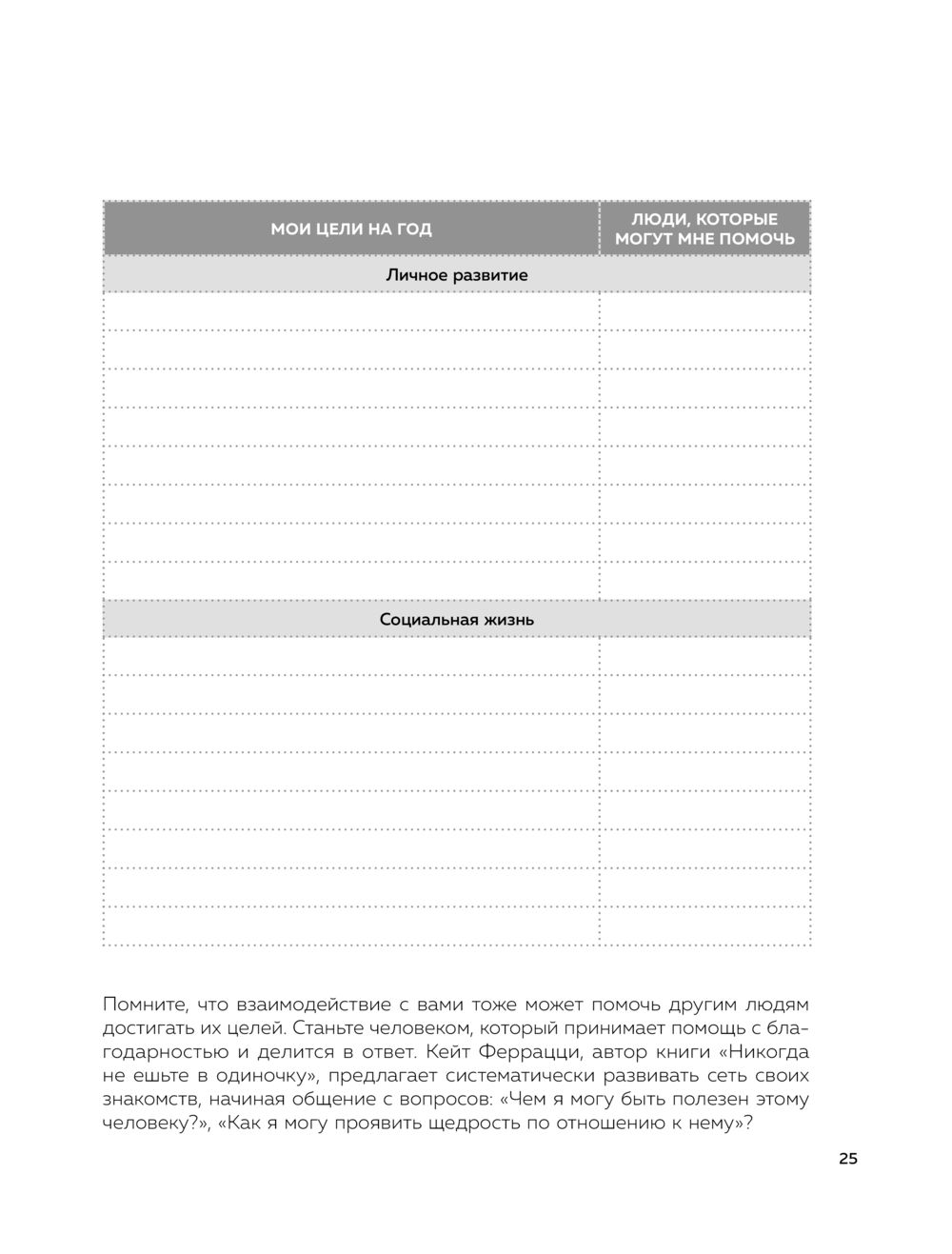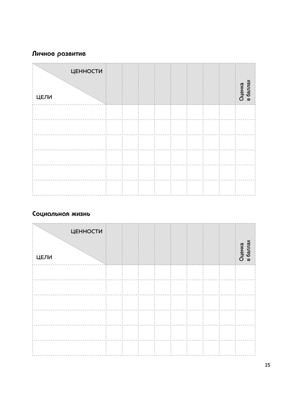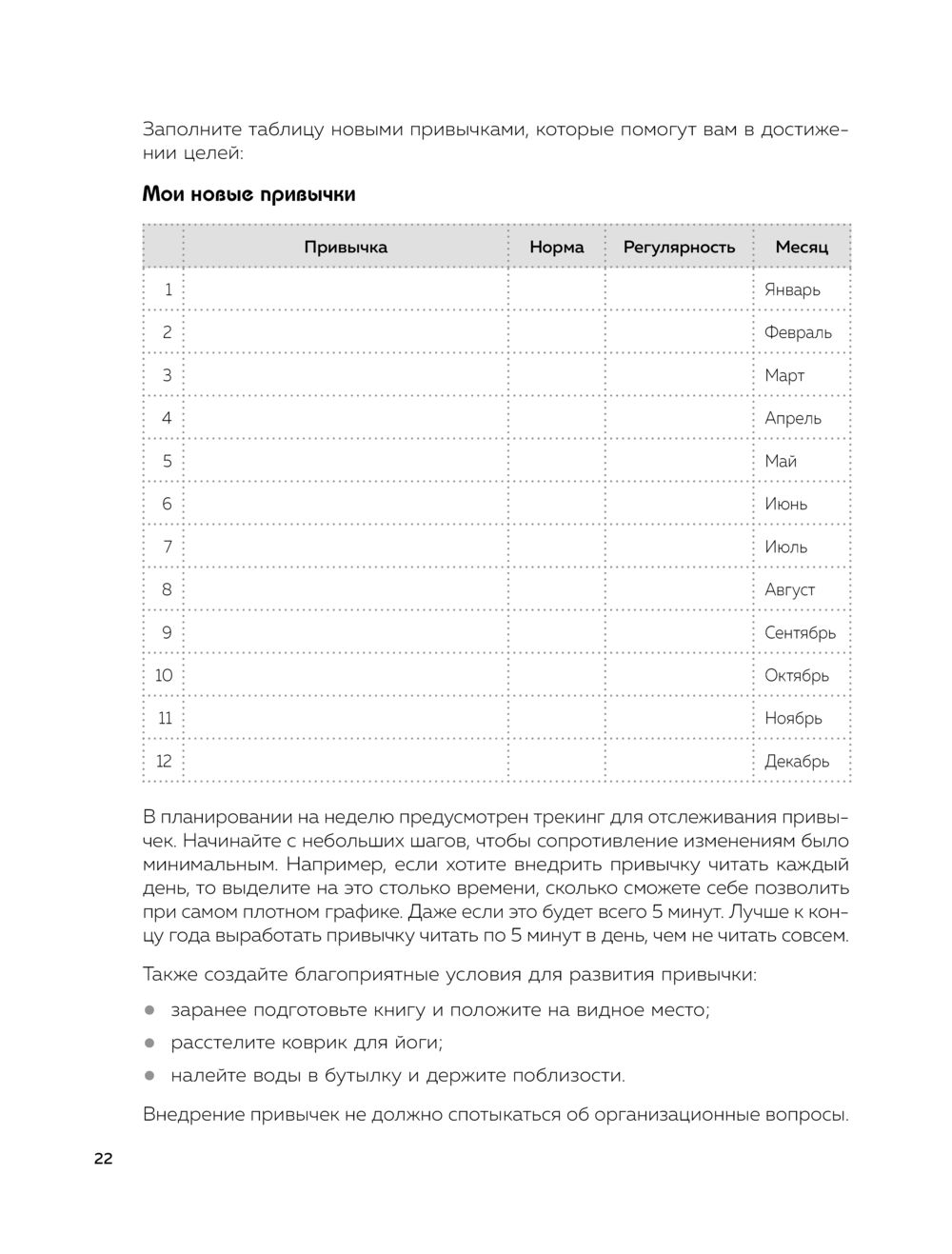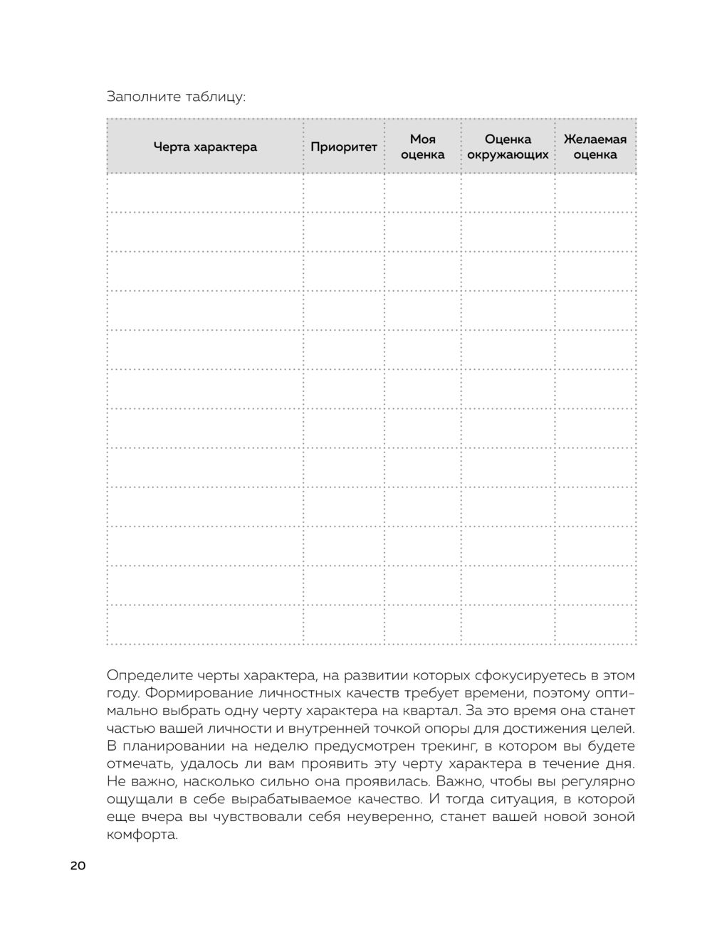 Этот еженедельник – программа полного преображения жизни за 52 недели с помощью постановки приоритетов. Он помогает сфокусировать усилия на главных задачах и навести порядок во всех жизненных сферах. Содержит трекеры привычек, поля для проработки целей на неделю, квартал и год, структурирующие списки и формы для анализа минувшего периода.