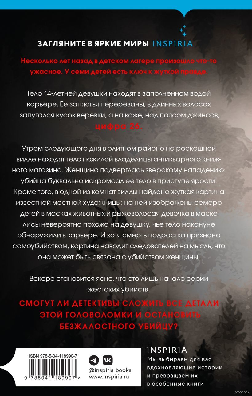 Утром следующего дня в элитном районе на роскошной вилле находят тело пожилой владелицы антикварного книжного магазина. Женщина подверглась зверскому нападению: убийца буквально искромсал ее тело в приступе ярости. Кроме того, в одной из комнат виллы найдена жуткая картина известной местной художницы: на ней изображены семеро детей в масках животных и рыжеволосая девочка в маске лисы, невероятно похожа на девушку, чье тело накануне обнаружили в карьере. И хотя смерть подростка признана самоубийством, картина наводит следователей на мысль, что она может быть связана с убийством женщины.