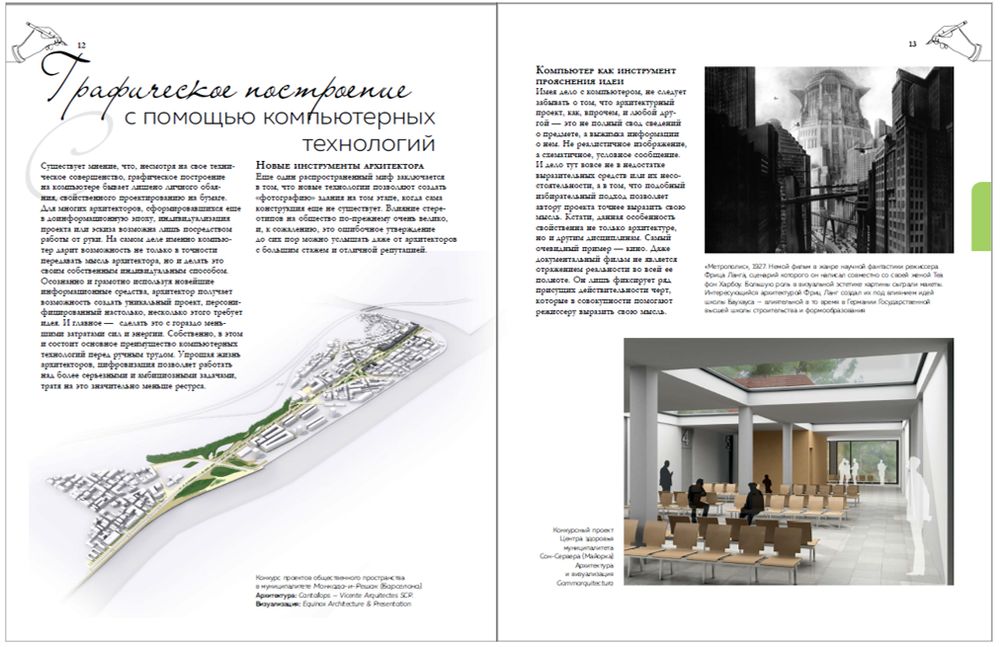 Графическое изображение будущих построек – актуальная задача для архитекторов во все времена. Основным способом выражения мысли и визуального подкрепления проекта на протяжении многих лет и до сегодняшнего дня остается рисование. Однако сегодня к традиционным техникам добавился потенциал компьютерных технологий.