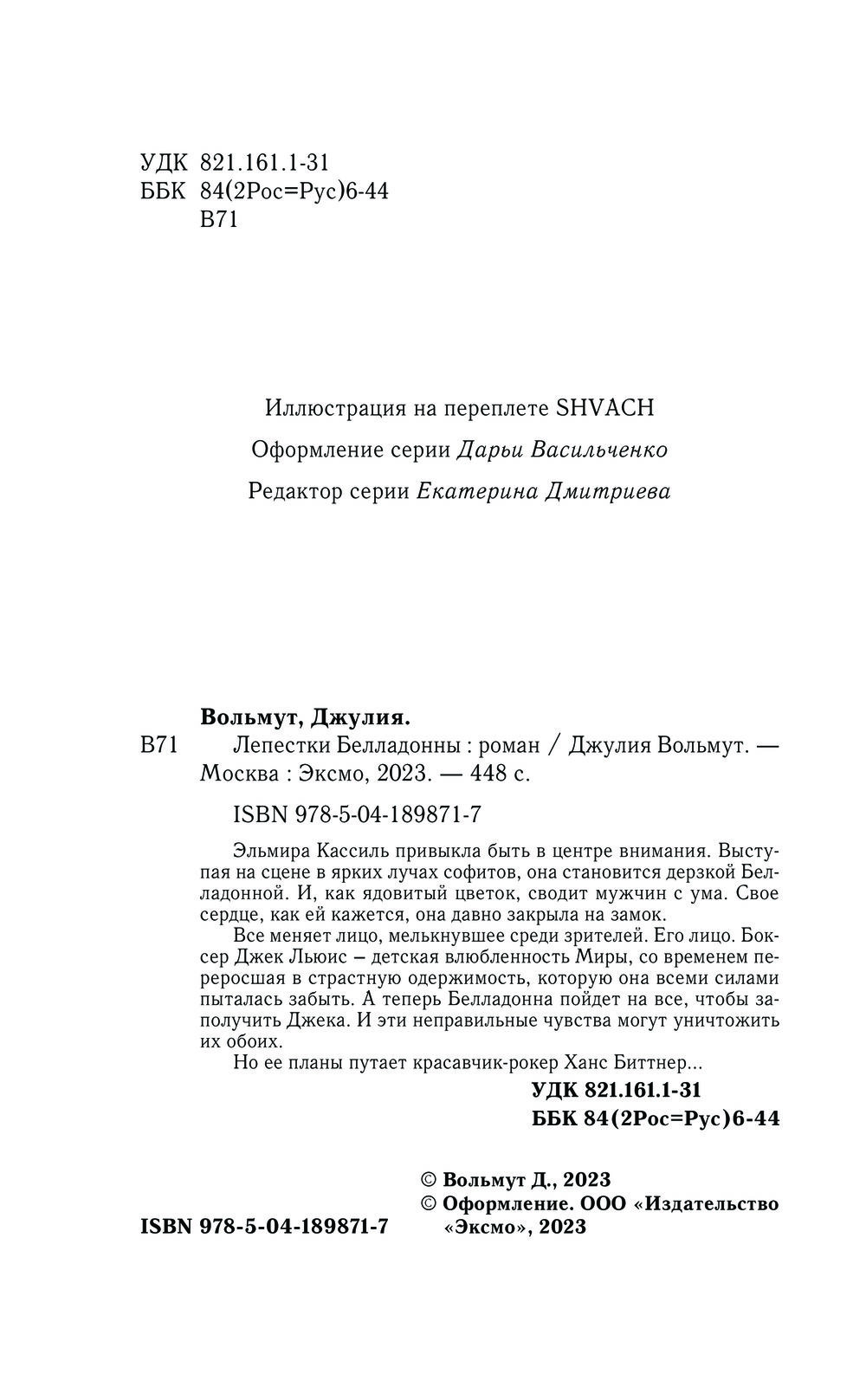 Все меняет лицо, мелькнувшее среди зрителей. Его лицо. Боксер Джек Льюис – детская влюбленность Миры, со временем переросшая в страстную одержимость, которую она всеми силами пыталась забыть. А теперь Белладонна пойдет на все, чтобы заполучить Джека. И эти неправильные чувства могут уничтожить их обоих.