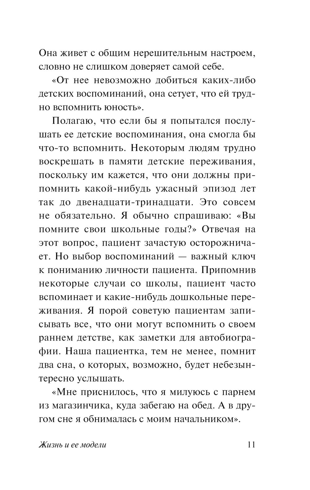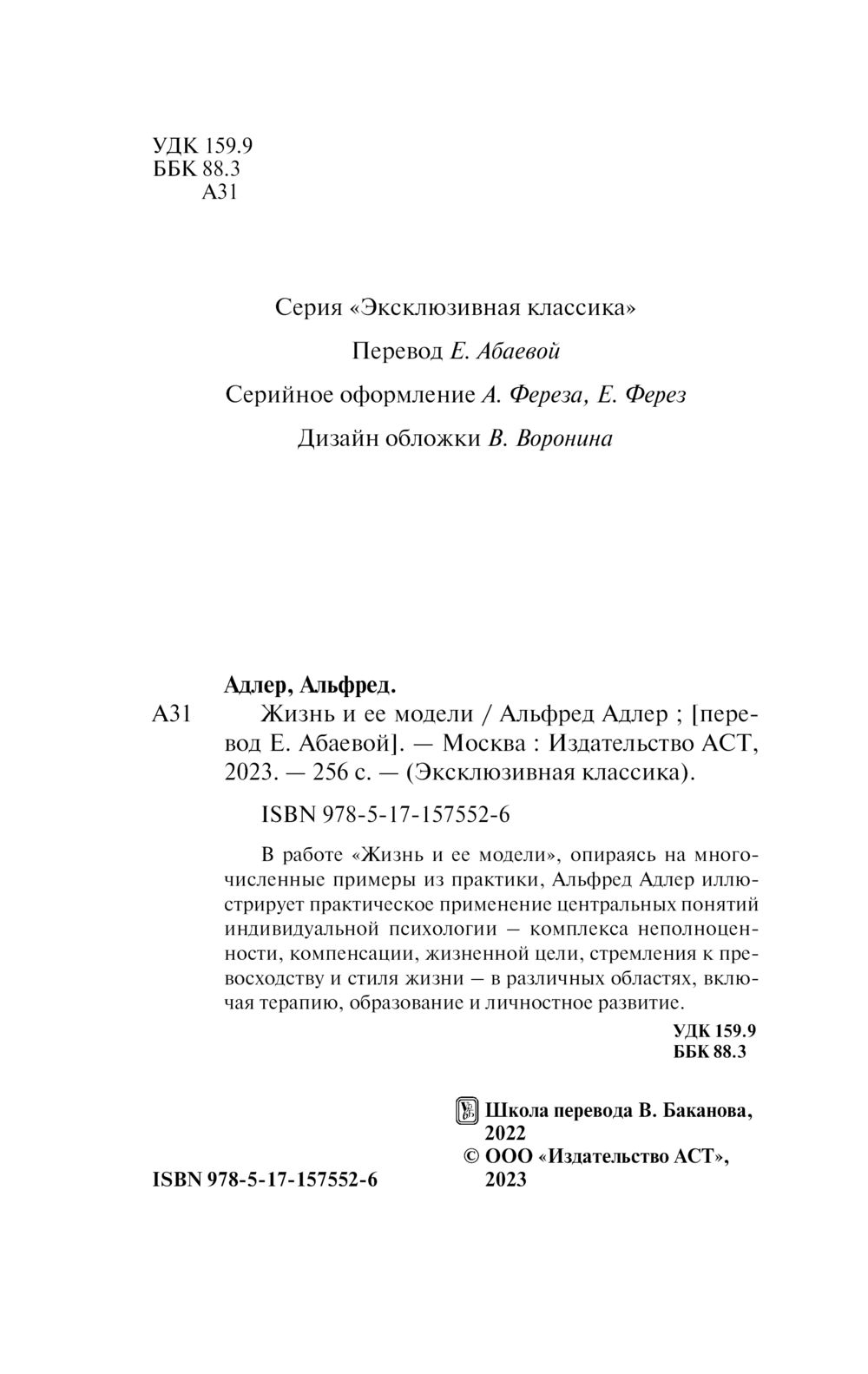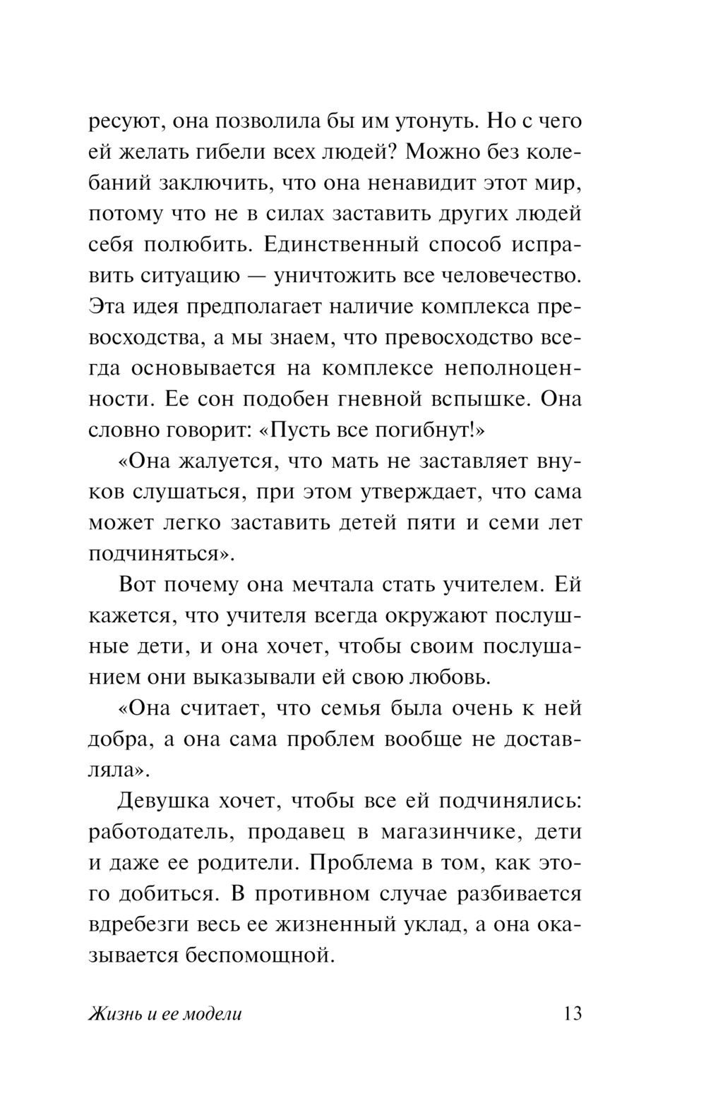 В работе "Жизнь и ее модели", опираясь на многочисленные примеры из практики, Альфред Адлер иллюстрирует практическое применение центральных понятий индивидуальной психологии – комплекса неполноценности, компенсации, жизненной цели, стремления к превосходству и стиля жизни – в различных областях, включая терапию, образование и личностное развитие.