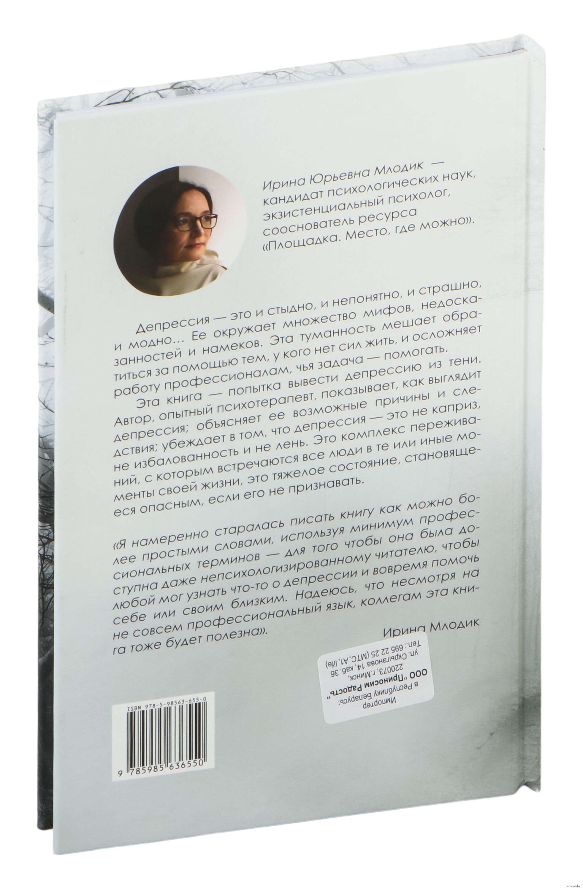 Ирина Млодик знакома многим как опытный психотерапевт, автор множества научно-популярных книг по психологии. Ее отличает умение говорить с читателем о сложных темах максимально ясно и вместе с тем профессионально обоснованно. Эта книга – не исключение. Она представляет собой психологический анализ депрессии: описание ее проявлений, анализ причин и возможных рисков, размышления о необходимости и возможности помощи.