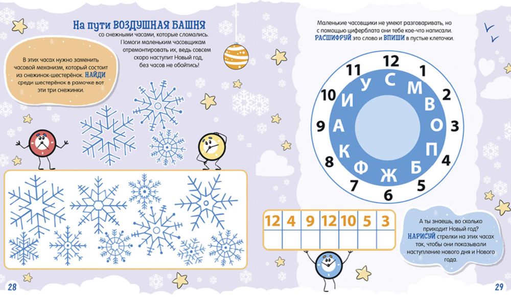 Чтобы вернуть пропажу и помочь Деду Морозу, ребенок пройдет увлекательный квест: будет разгадывать шифры и головоломки, раскрашивать и дорисовывать, прокладывать путь в лабиринтах и искать спрятанные предметы.
