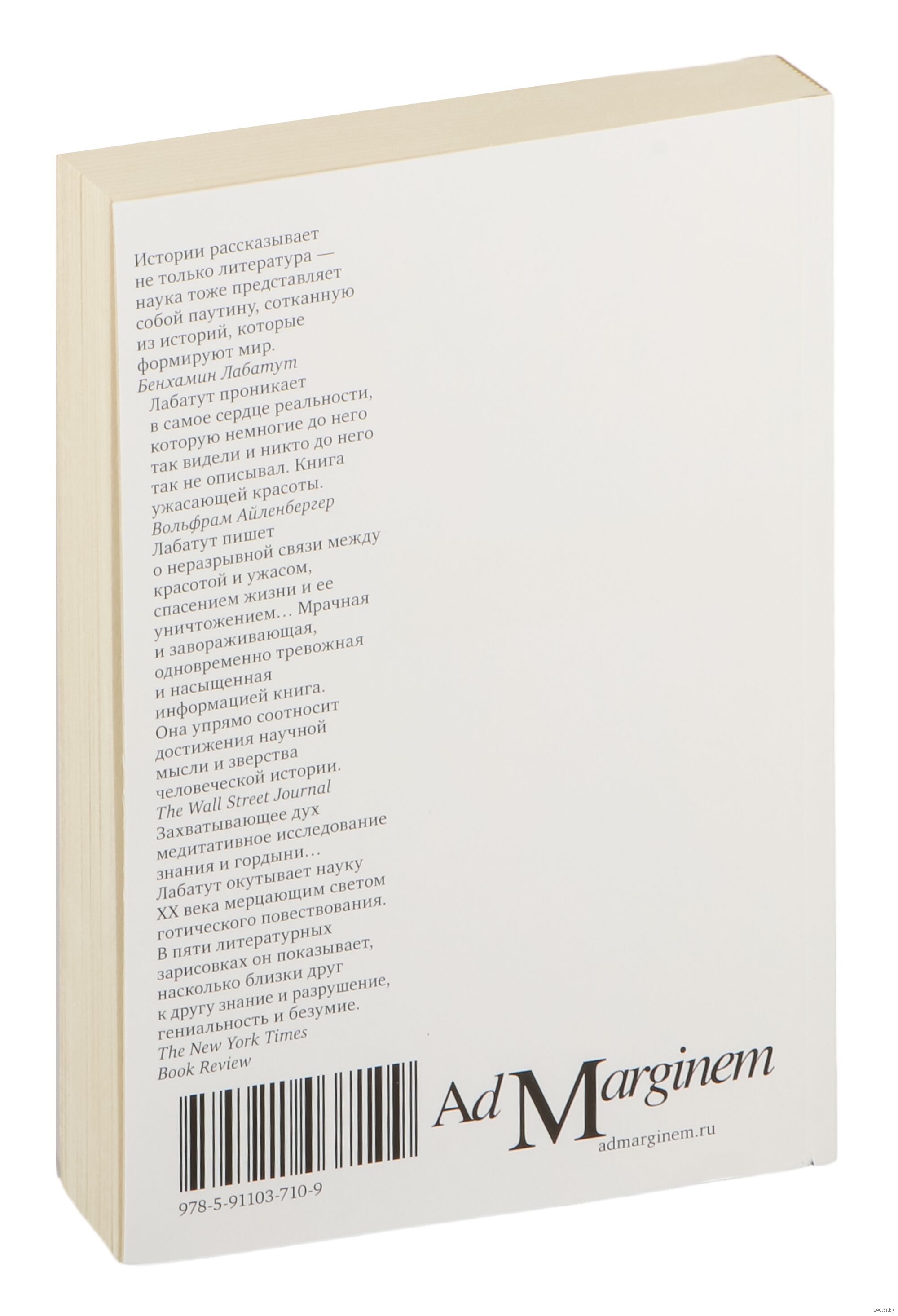 В научно-популярных книгах обычно воспеваются чудесные достижения науки в области прикладной математики, теоретической физики, химии, освоения космоса и шире, научного познания мира. Бенхамин Лабатут выбирает совсем другой угол зрения. Его новаторское «художественное произведение, основанное на реальных событиях» (хотя лучше было бы назвать этот текст нон-фикшен романом, поскольку большинство персонажей, среди которых Фриц Габер, Нильс Бор, Вернер Гейзенберг, Александр Гротендик, Эрвин Шрёдингер и др., – исторические личности, а значительная часть повествования базируется на исторических фактах) скорее воспевает чувство тревоги, сопутствующее великим научным открытиям, и обращается к темной стороне рациональности. Роман, переведенный на двадцать два языка, вошел в шорт-лист международного Букера в 2021 году и стал заметным литературным событием.