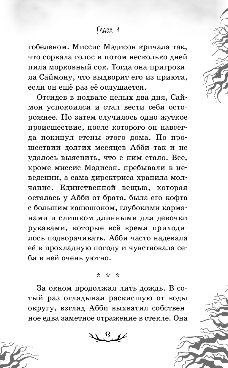 Абби с детства живёт в жутком приюте миссис Мэдисон. Она никогда не видела родителей, а почти год назад бесследно исчез и её брат Саймон. Он отправился исследовать аварийное крыло приюта, и больше его никто не видел... С тех пор Абби замечает, что стали пропадать и другие дети! А директриса ведёт себя очень странно. Возвращается по ночам, всё хуже и хуже относится к ребятам... Но Абби никто не верит: дети могли и сбежать, а директриса всегда терпеть не могла сирот! Может, они правы? Или в приюте Мэдисон на самом деле творится что-то кошмарное?