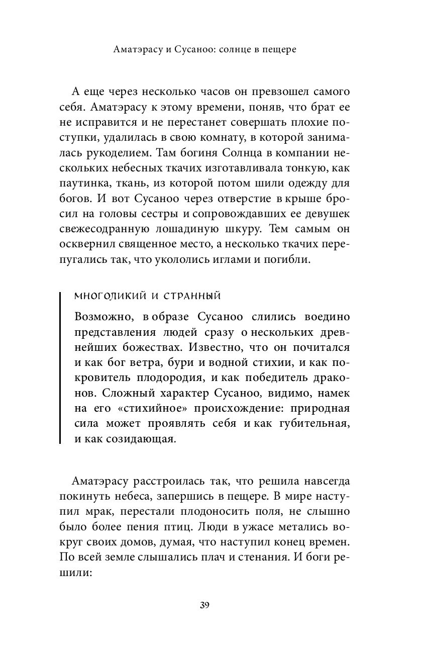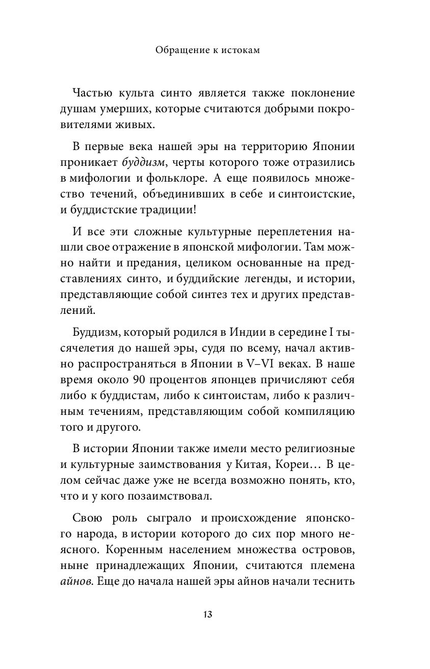 Собранные в книге мифы и легенды оказались глубоко вплетены во все формы культуры Японии – от традиционных татуировок японских мафиозных кланов – якудза – до культовых манг и аниме. Япония подарила миру свой уникальный взгляд на природу и человека, а сюжеты и герои древних сказаний раскрывают таинственные глубины японской философии.