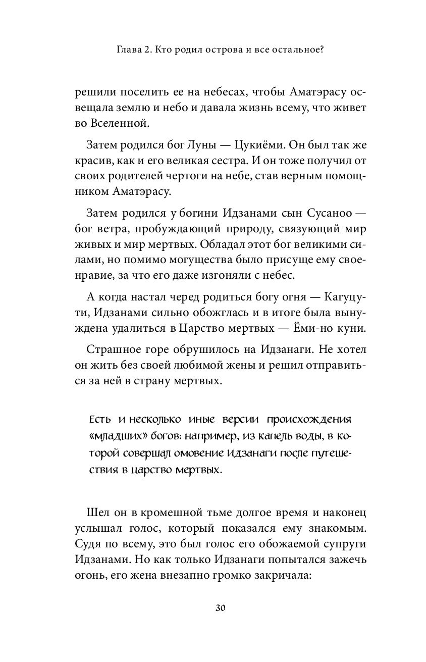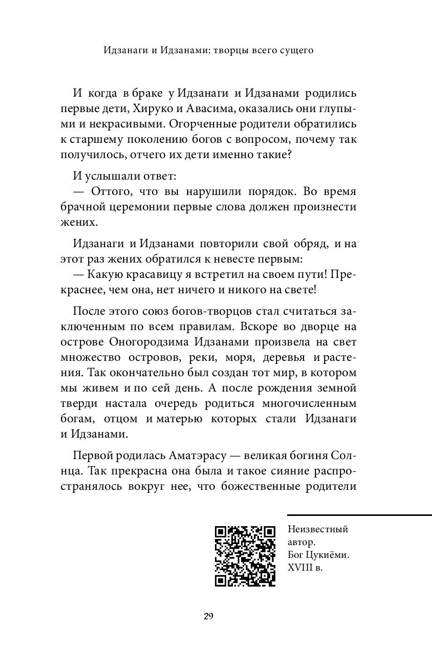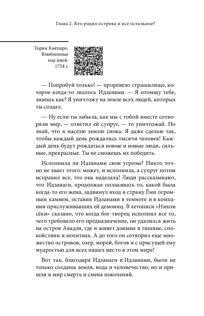На страницах этой книги вы встретитесь со своенравными богами, грозными драконами, воинами Бэнкэем и Кинтаро, Снежной девой Юки-онна и Девой цветения, коварными лисами-кицунэ, призраками, оборотнями и чертями. Красочные описания и неожиданные повороты погрузят вас в самое сердце японской мифологии, раскрывая глубокое символическое значение и жизненные уроки, заключенные в каждой истории. Цветные и черно-белые иллюстрации, QR-коды, ведущие на страницы музеев и энциклопедий, дополнят путешествие в страну, где реальность переплетается с магией и легендами.