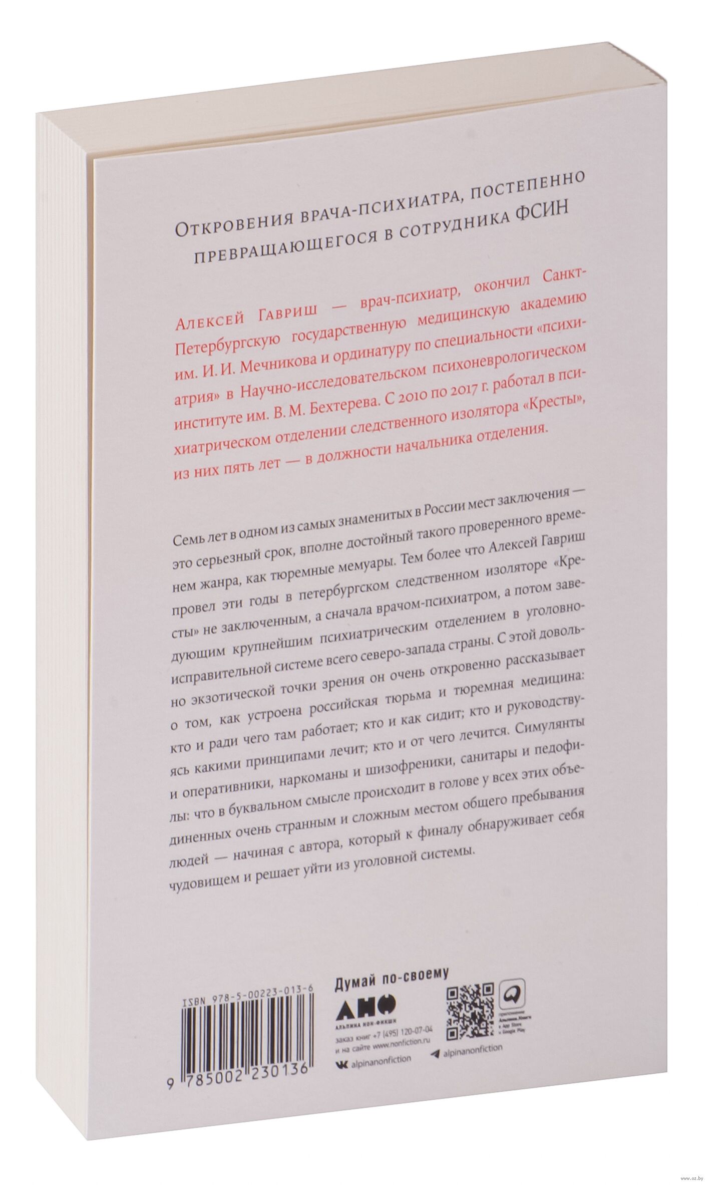 Семь лет в одном из самых знаменитых в России мест заключения – это серьезный срок, вполне достойный такого проверенного временем жанра, как тюремные мемуары. Тем более что Алексей Гавриш провел эти годы в петербургском следственном изоляторе "Кресты" не заключенным, а сначала врачом-психиатром, а потом заведующим крупнейшим психиатрическим отделением в уголовно-исправительной системе всего северо-запада страны.