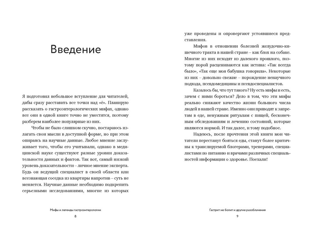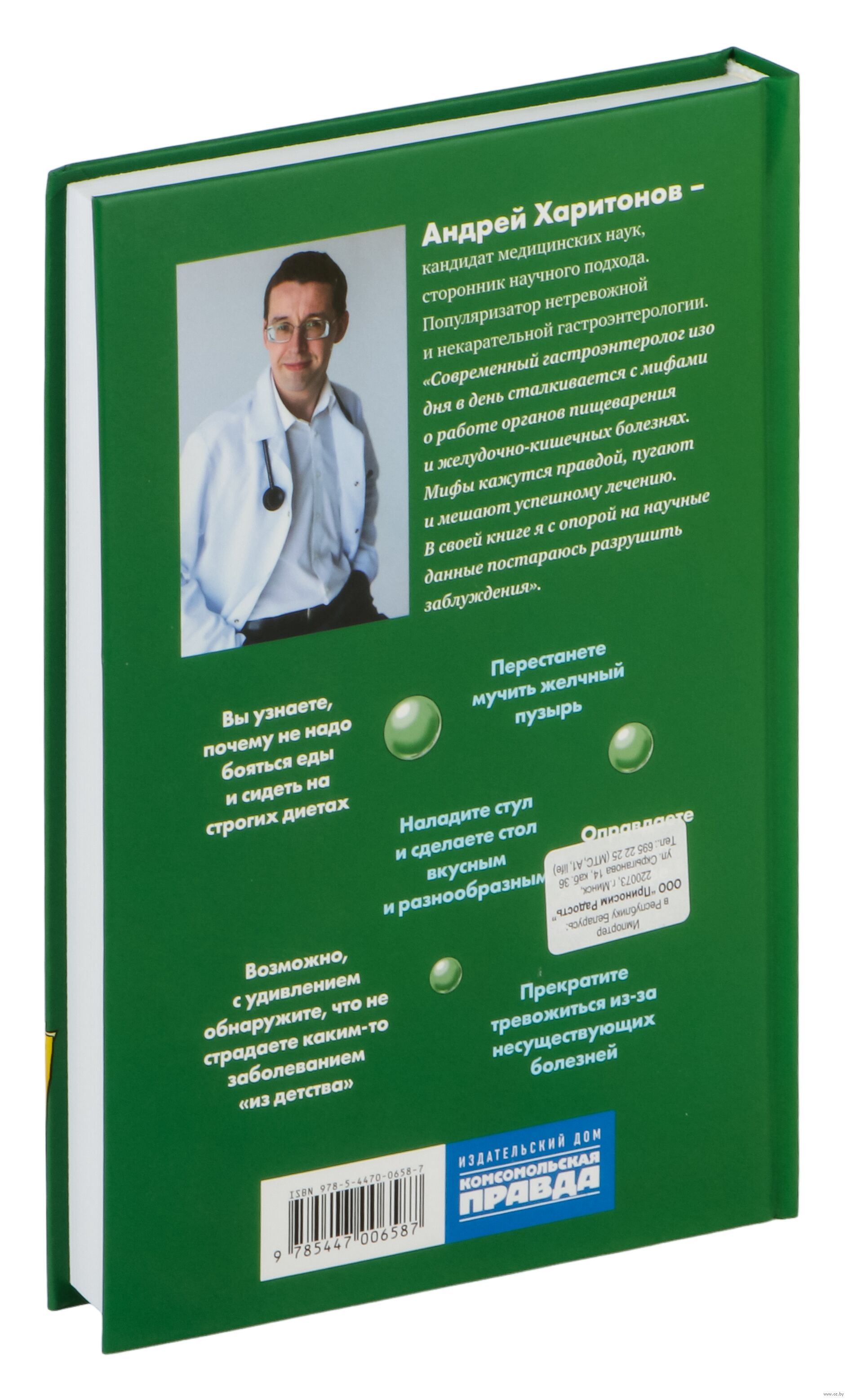 Книга развенчивает популярные заблуждения, связанные со здоровьем желудка и кишечника. Например, что суп улучшает пищеварение, нет яда страшнее чипсов, глютен – зло, а желчь необходимо гнать. Гастроэнтеролог, кандидат медицинских наук Андрей Харитонов знает, как мифы снижают качество жизни: приводят к запретам в еде, ненужным ритуалам с пищей, бесполезным обследованиям и лечению состояний, которые являются нормой. Легко и понятно, опираясь на современные научные данные, доктор развеивает заблуждения про гастрит и панкреатит, синдром раздраженного кишечника и дисбактериоз, колит и атрофию. Легендарные лечебные столы – так ли они действенны? Чем полезен кофе и как киви поможет при запорах? Что делать, если в желчном пузыре появились камни? Когда лечение действительно необходимо, а когда бесконечные анализы – трата времени и денег? Наконец, как не попасть на удочку к шарлатанам от медицины? В книге много юмора и примеров из врачебной практики.