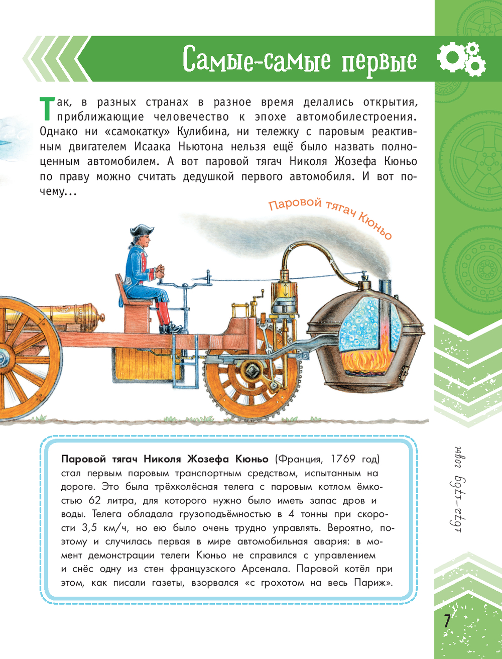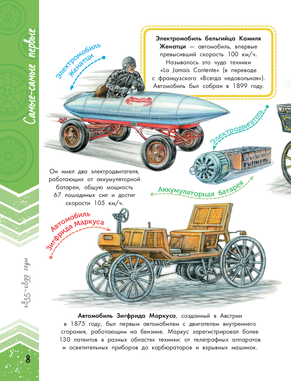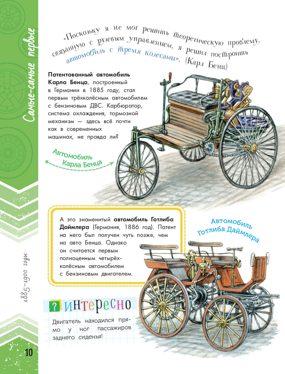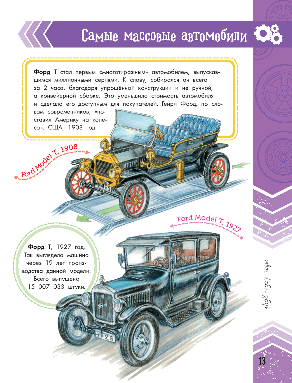 Эта книга, словно машина времени, перенесёт вас через несколько сотен лет и покажет эволюцию автомобилей. Вы увидите, как менялись механизмы со времён парусной повозки Симона Стевина и "самокатки" Кулибина до наших дней. Узнаете, когда появились зеркала заднего вида и ремни безопасности, чем отличались концепты 50-х годов ХХ века. Самые разные – легковые и грузовые, коллекционные, военные, спортивные и сверхзвуковые – автомобили и множество любопытных фактов о их создании и создателях представлены в этой книге.