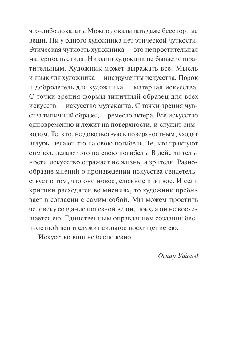 "Я так рад, что ты никогда ничего не создавал – ни разу не изваял статую, не написал картину, не сотворил ничего вне себя самого! Твоим искусством была жизнь".